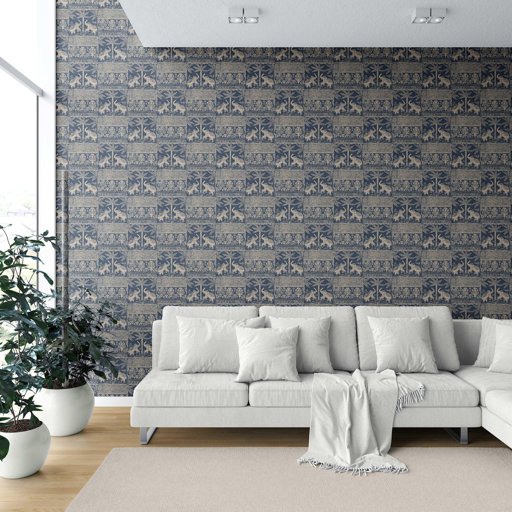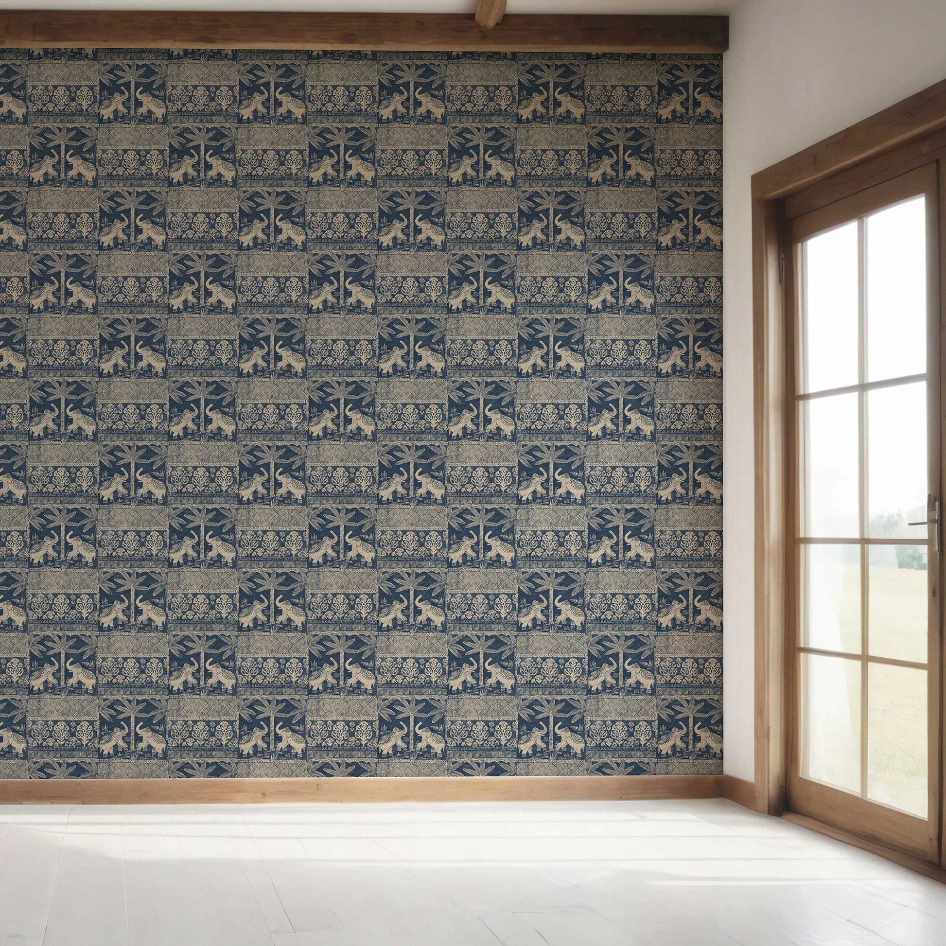 Inspired by the gentle majesty of elephants and the serene beauty of nature, the Elephant Grove Wallpaper collection brings timeless charm to your walls. Each design is a tribute to traditional block printing, featuring intricately illustrated elephants, palms, and forest motifs in a rhythmic layout. With earthy tones, rich indigos, and muted pastels, this wallpaper collection blends storytelling with sophistication—perfect for accent walls or full-room transformations. Ideal for those who seek heritage-inspired elegance in modern interiors.