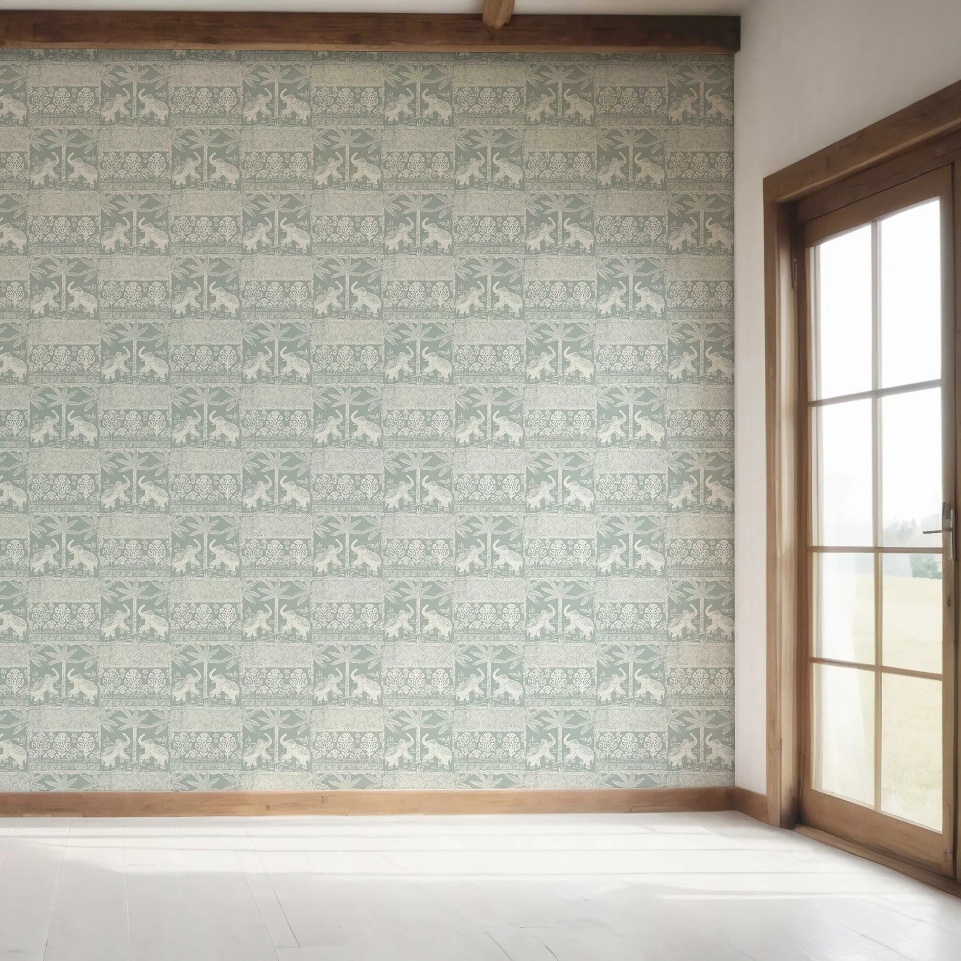 Inspired by the gentle majesty of elephants and the serene beauty of nature, the Elephant Grove Wallpaper collection brings timeless charm to your walls. Each design is a tribute to traditional block printing, featuring intricately illustrated elephants, palms, and forest motifs in a rhythmic layout. With earthy tones, rich indigos, and muted pastels, this wallpaper collection blends storytelling with sophistication—perfect for accent walls or full-room transformations. Ideal for those who seek heritage-inspired elegance in modern interiors.