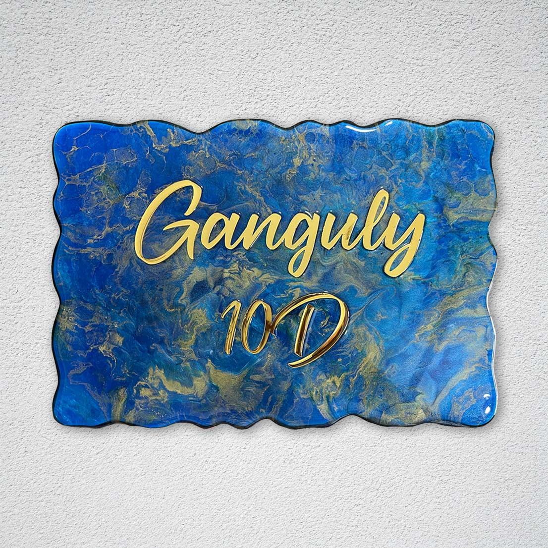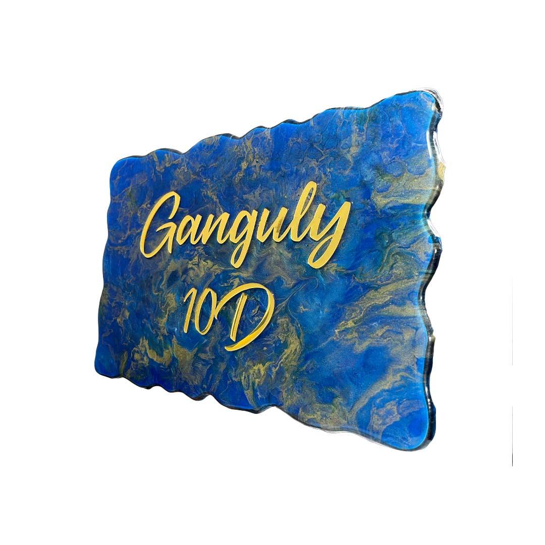 - We are unable to offer you a live preview of your customized Ganguly - Pearl Blue with Golden Blend Resin Nameplate. Our team will send you a manually generated preview via e-mail / WhatsApp message once you place the order. You can also request them to make additional changes. We will proceed with production only once we get your approval.
