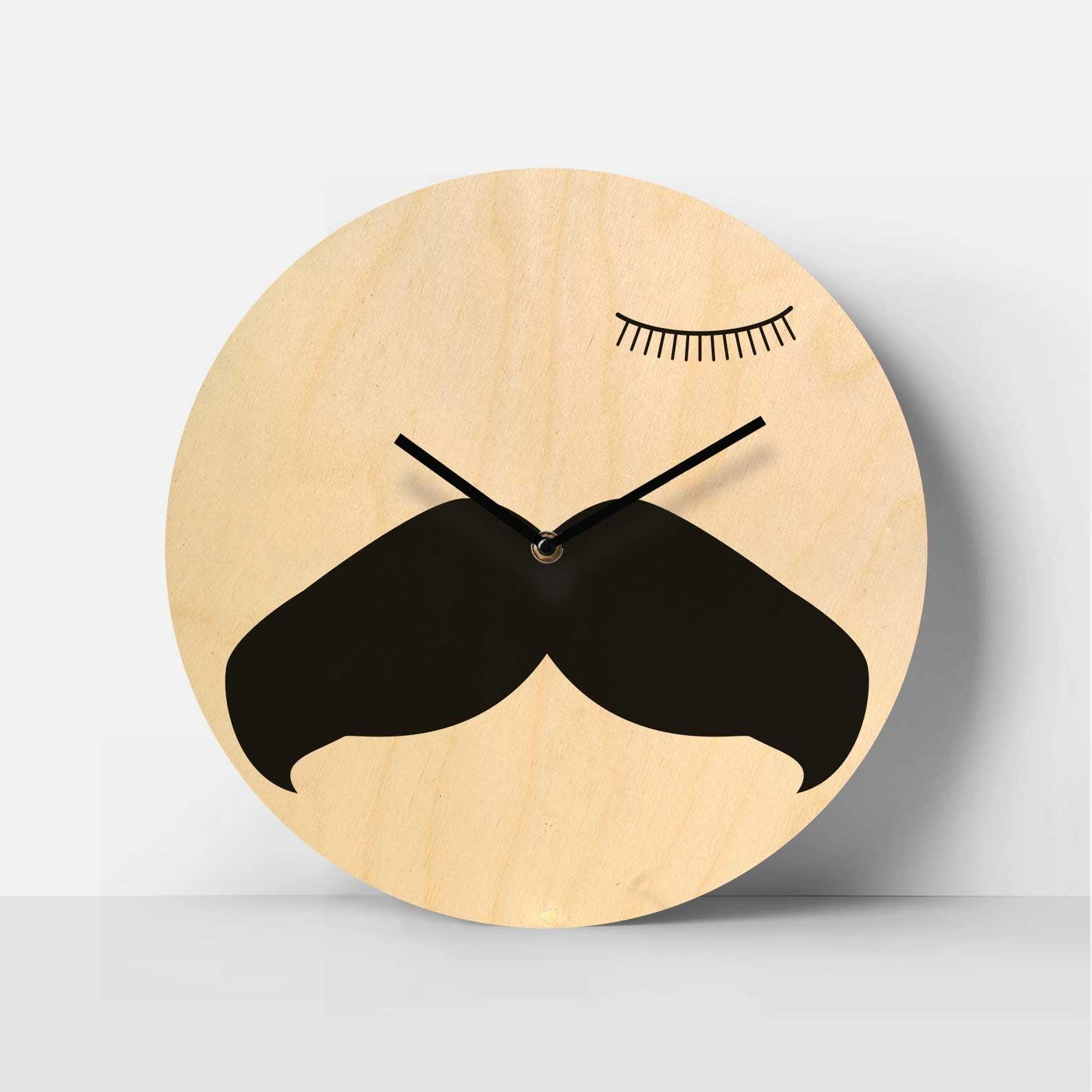 Fitted with a silent clock mechanism, the Classic Stache Birch Clock brings a sense of humor and effortless charm to any living space, café, or creative studio.