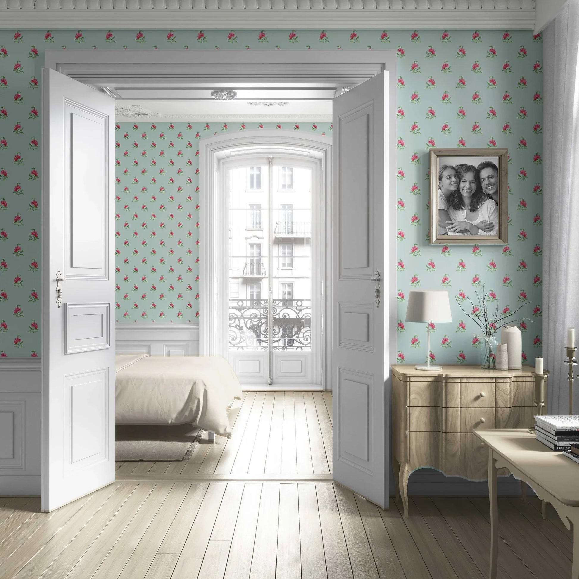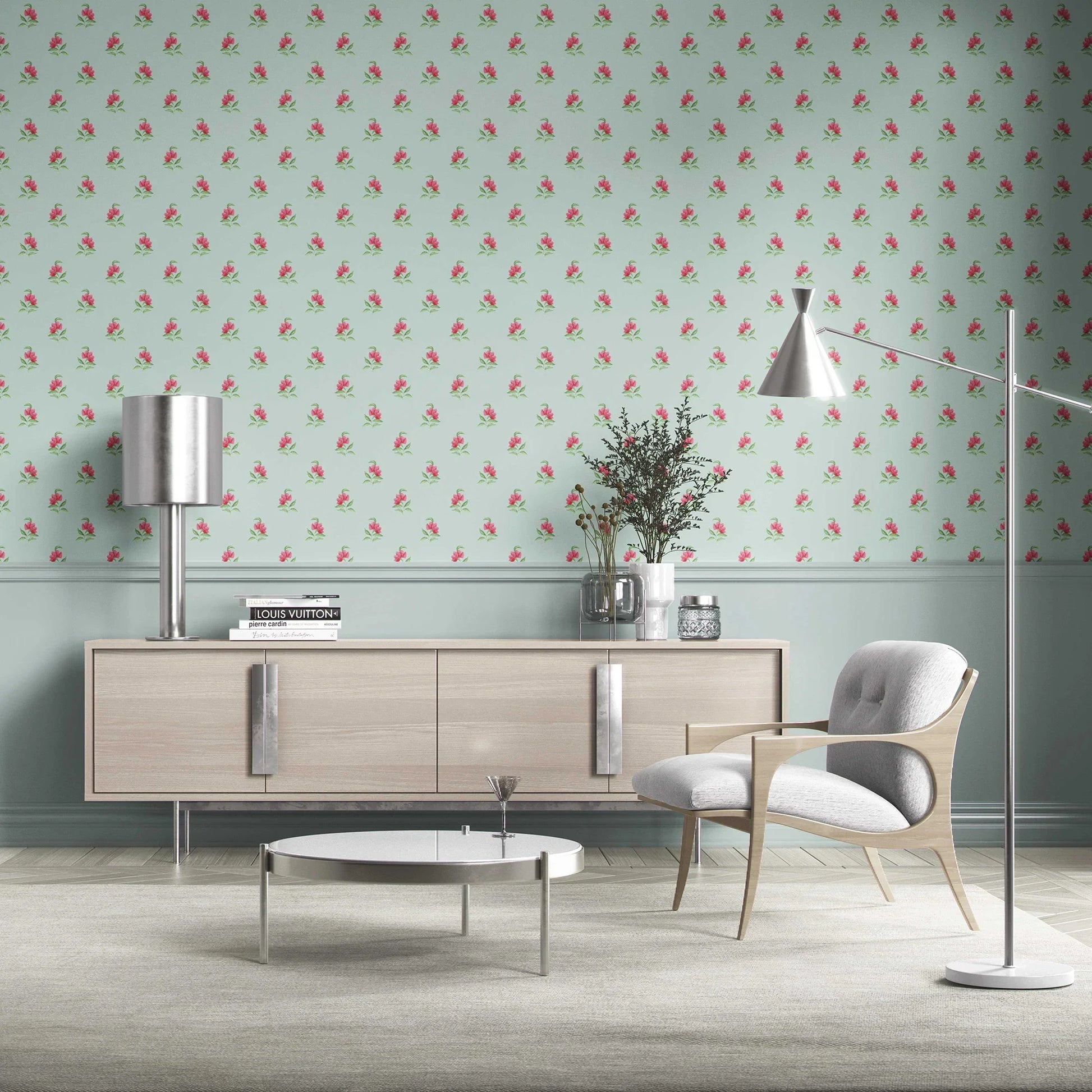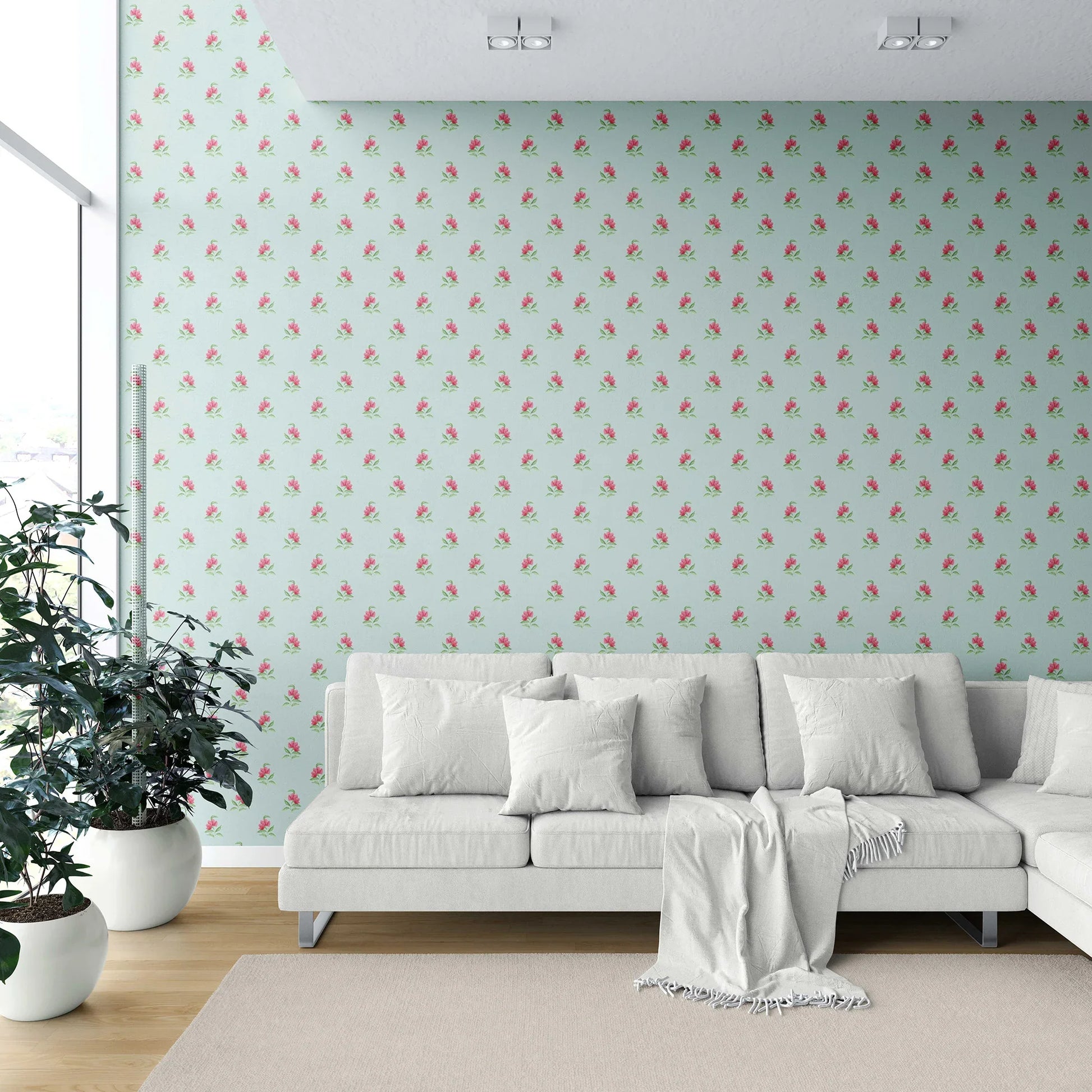 Perfect for creating a serene yet vibrant atmosphere, this wallpaper works beautifully in living rooms, bedrooms, dining spaces, or even boutique interiors. Its evenly spaced floral motifs bring balance to the design, while the subtle background shades offer versatility for pairing with various décor styles — from traditional Indian settings to modern minimalist spaces.