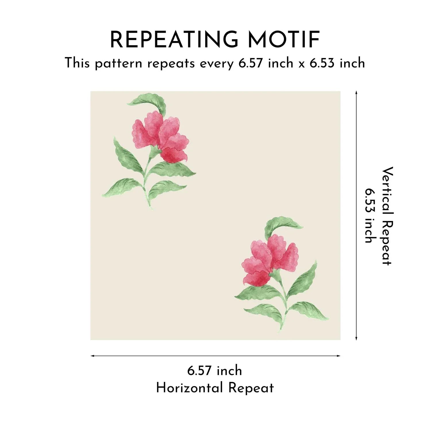 Inspired by the timeless elegance of Mughal gardens, the Gulabgarh Wallpaper captures the delicate charm of hand-painted florals arranged in a harmonious repeating pattern. Each bloom is rendered with a soft, watercolour touch, lending your space an air of grace and nostalgia.