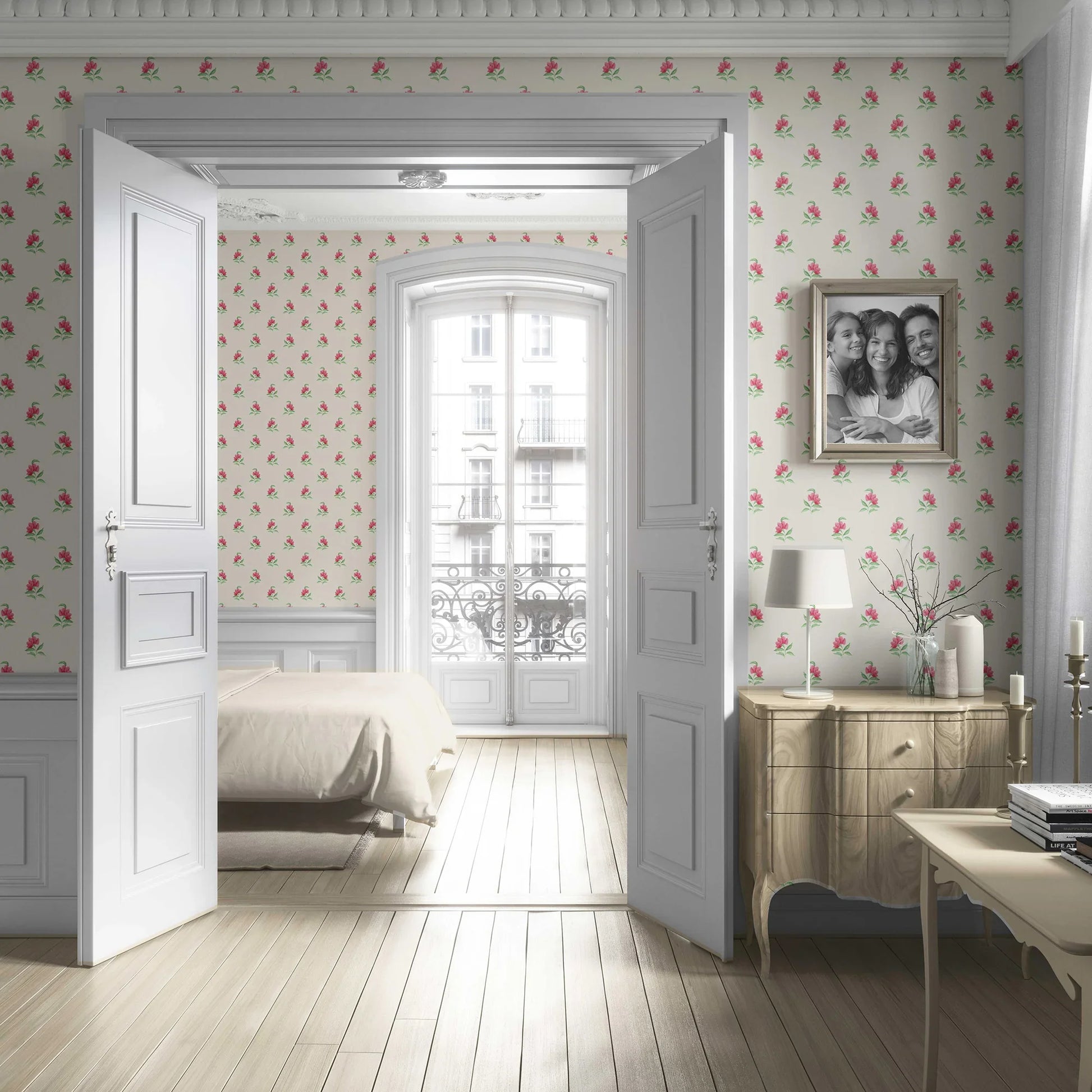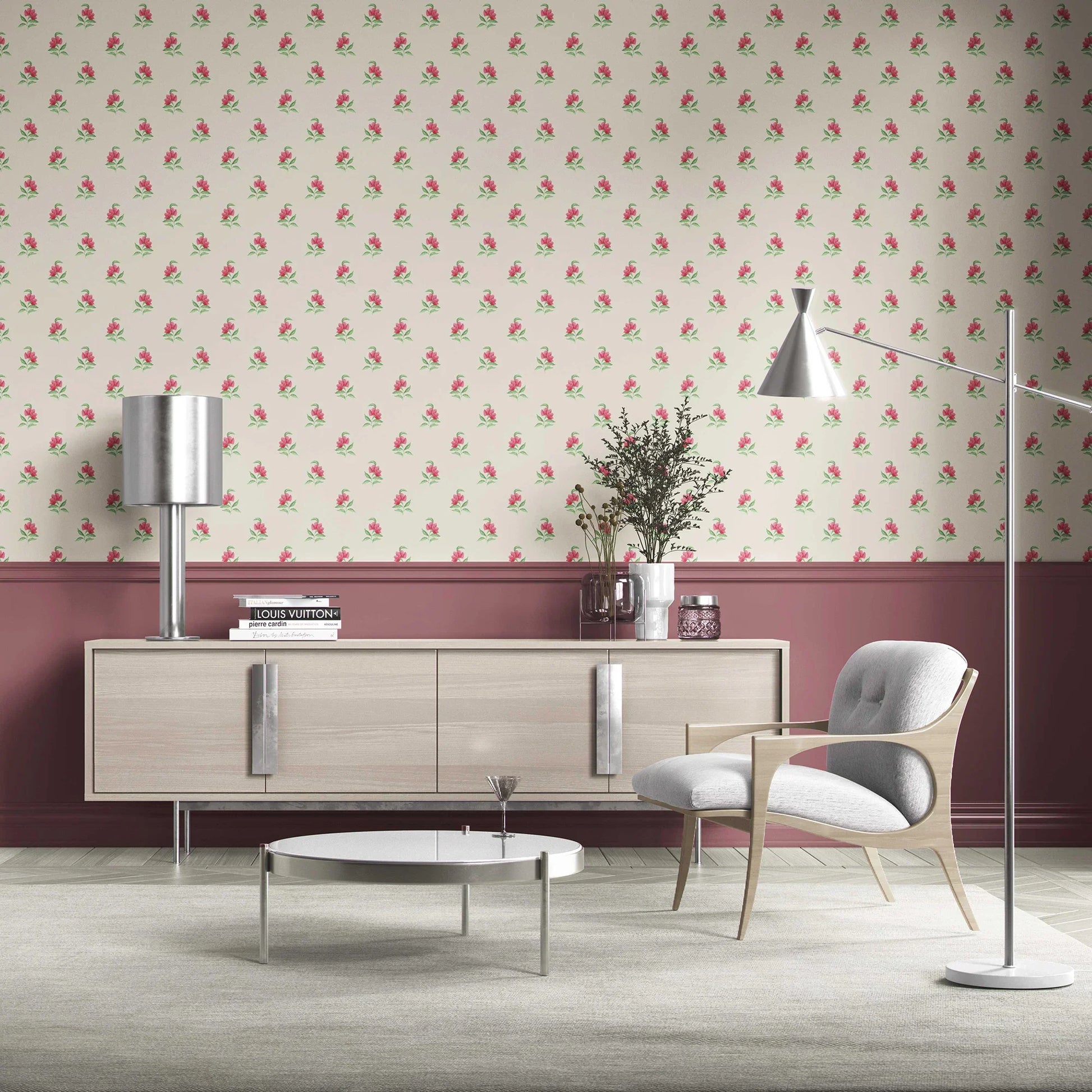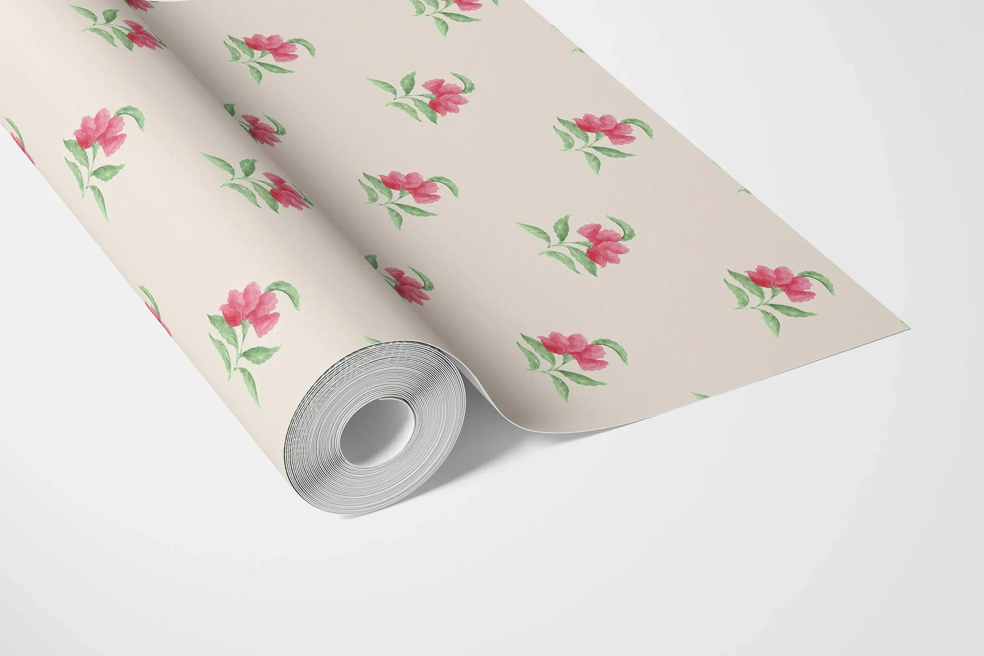 Perfect for creating a serene yet vibrant atmosphere, this wallpaper works beautifully in living rooms, bedrooms, dining spaces, or even boutique interiors. Its evenly spaced floral motifs bring balance to the design, while the subtle background shades offer versatility for pairing with various décor styles — from traditional Indian settings to modern minimalist spaces.