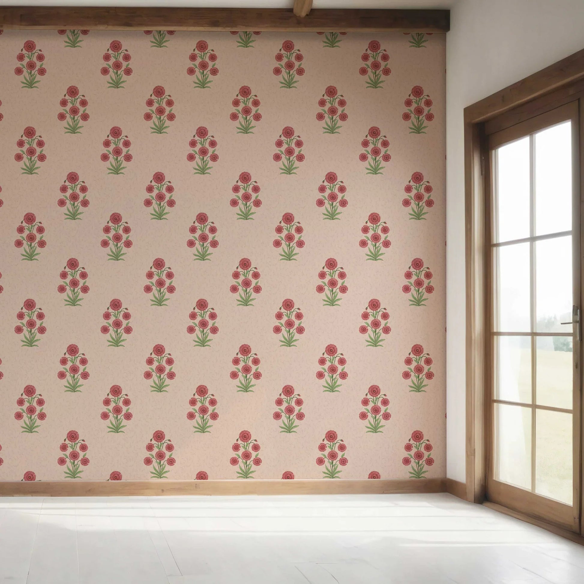 The Gulraaz Wallpaper brings timeless floral artistry into your interiors with its graceful bouquet-inspired motifs. Each cluster of blossoms is delicately arranged to evoke the charm of traditional hand-block prints, while the repeating pattern creates a sense of balance and rhythm across your walls.