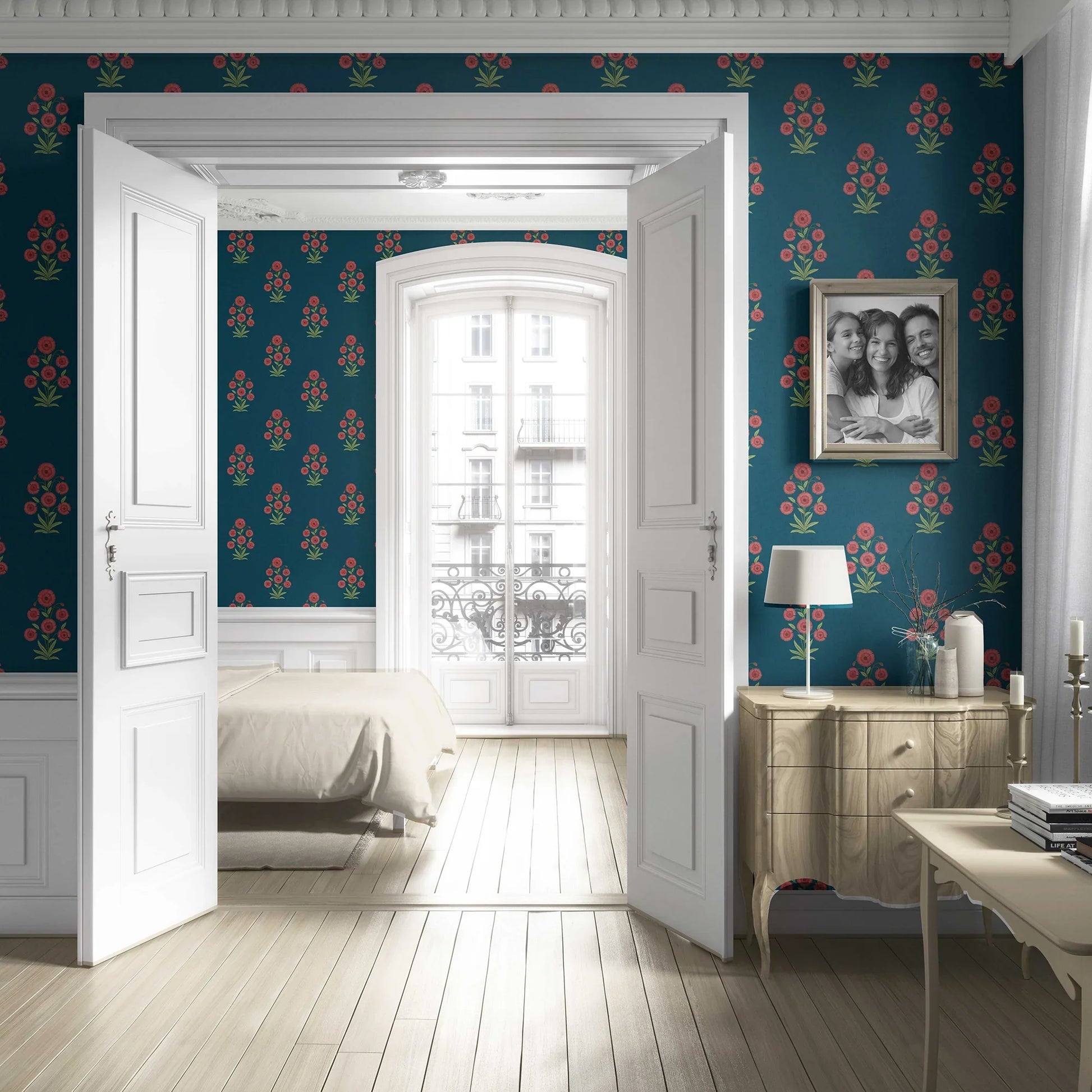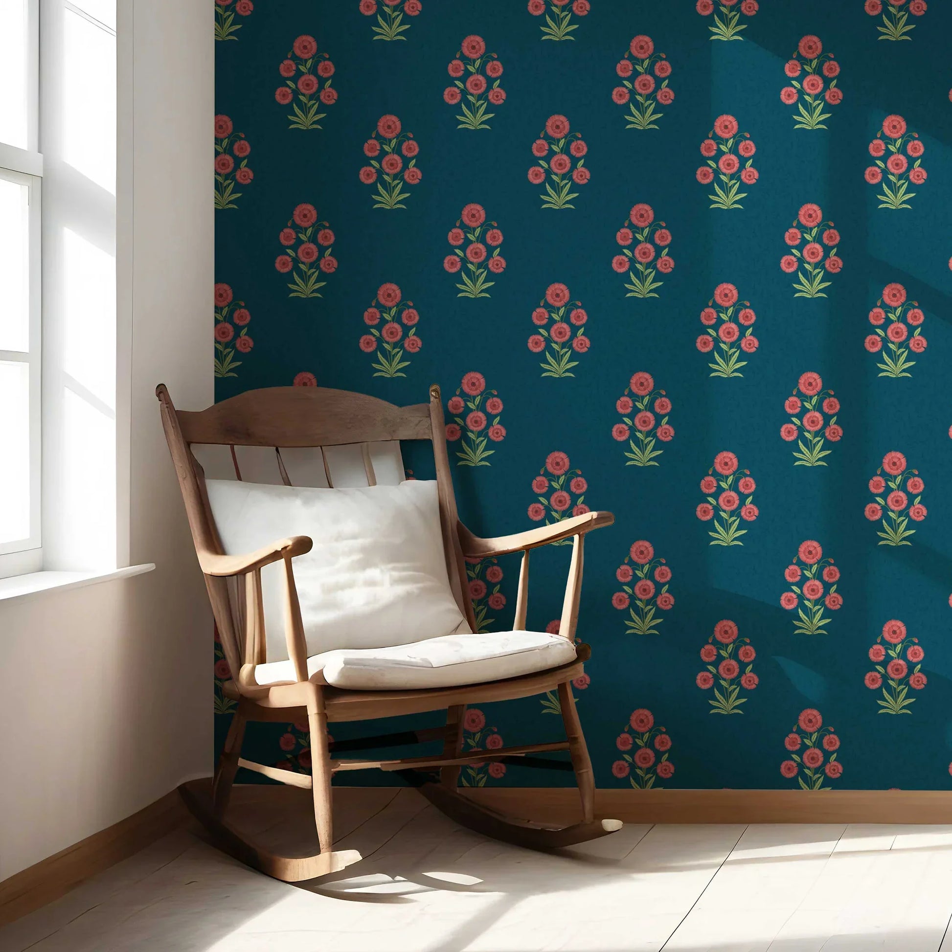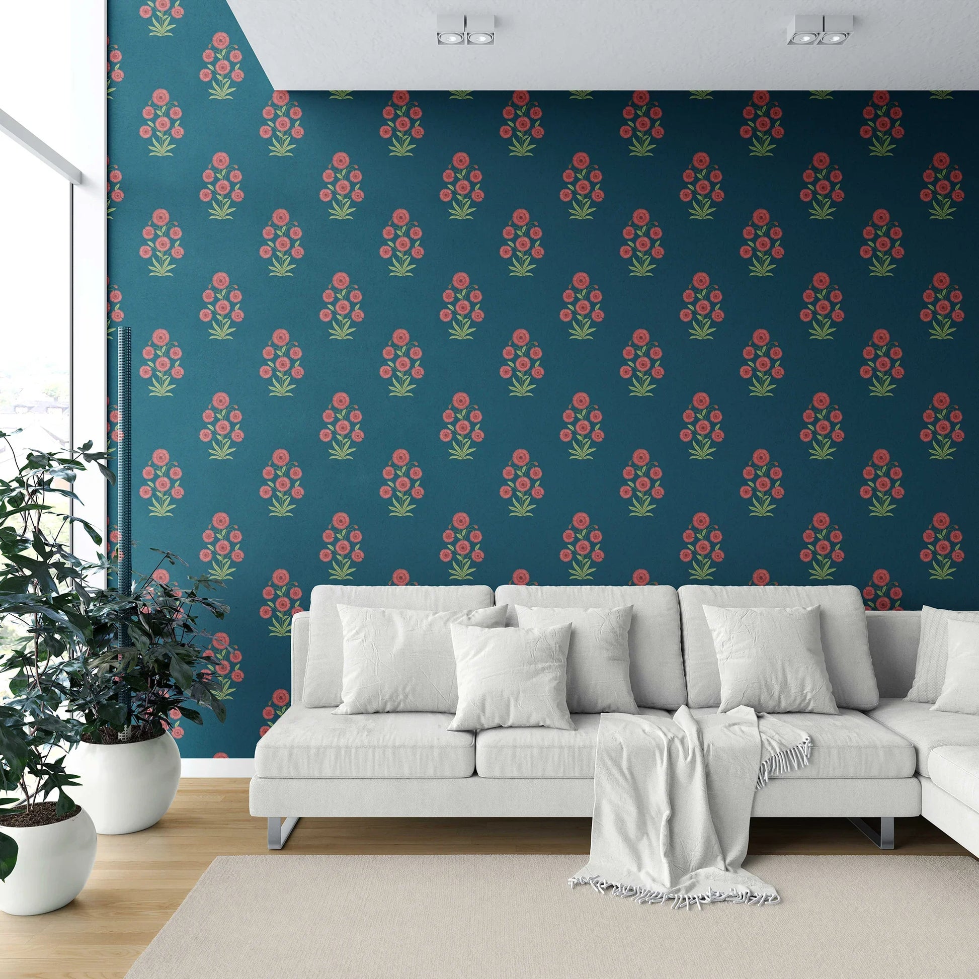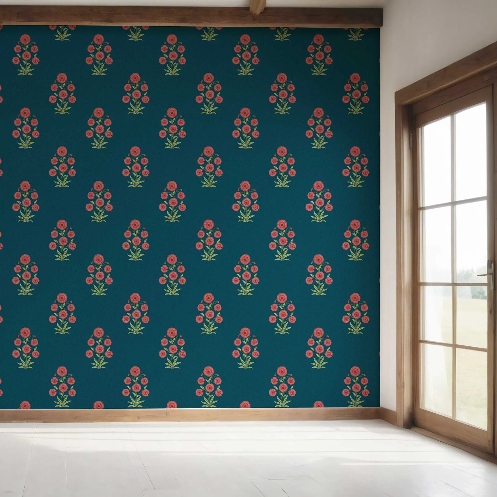 The Gulraaz Wallpaper brings timeless floral artistry into your interiors with its graceful bouquet-inspired motifs. Each cluster of blossoms is delicately arranged to evoke the charm of traditional hand-block prints, while the repeating pattern creates a sense of balance and rhythm across your walls.