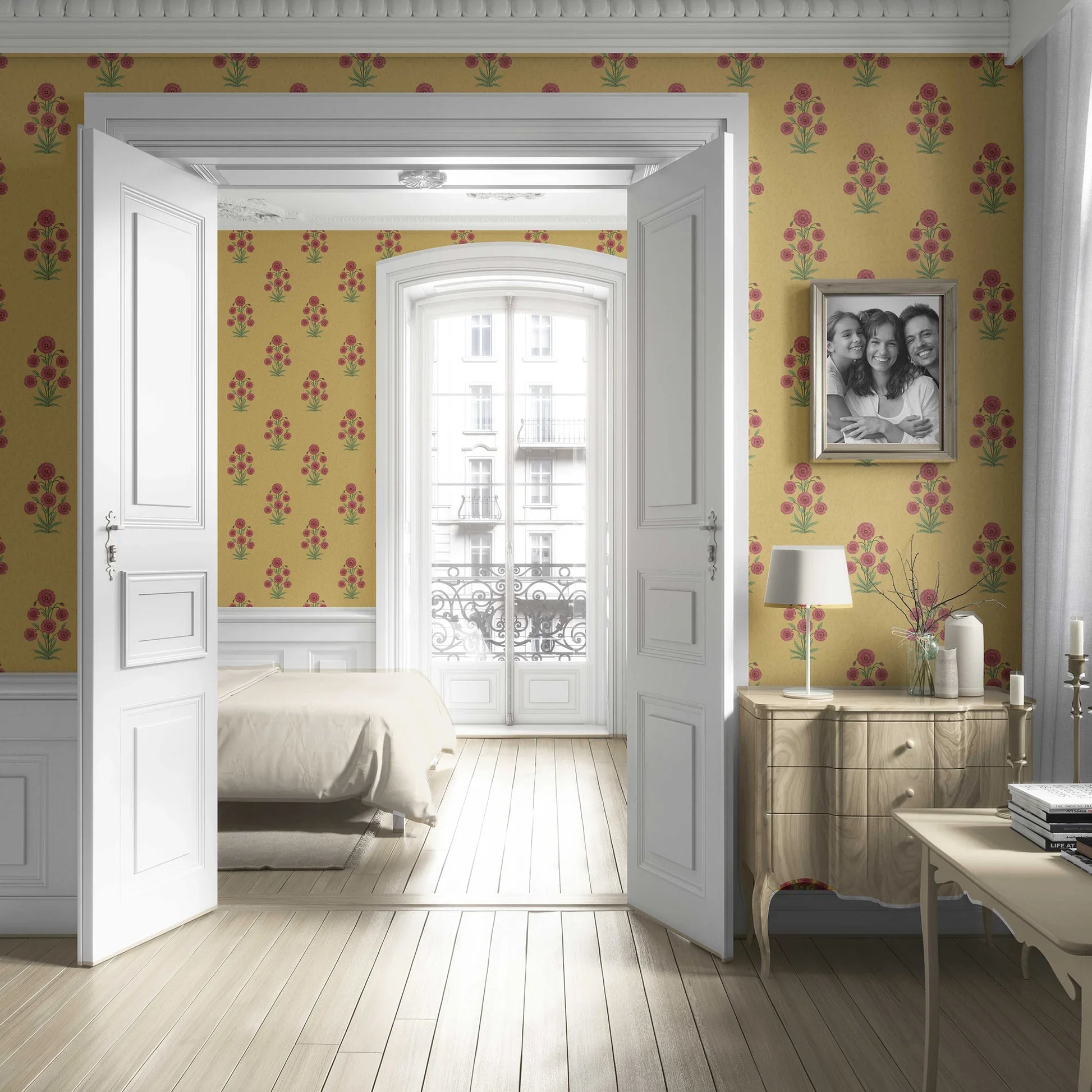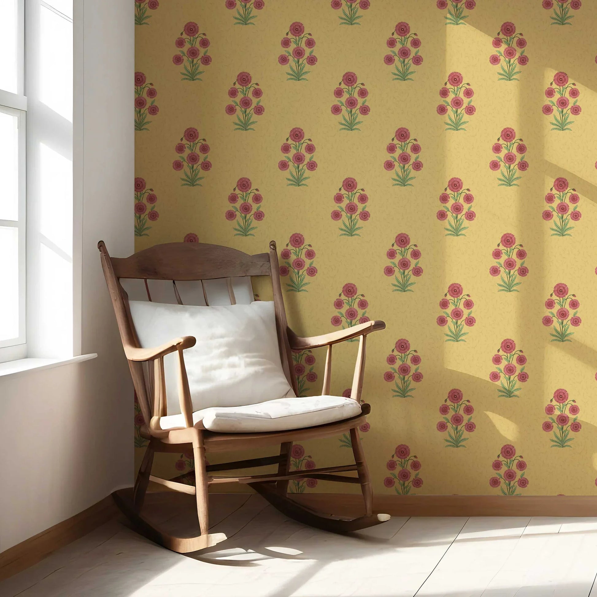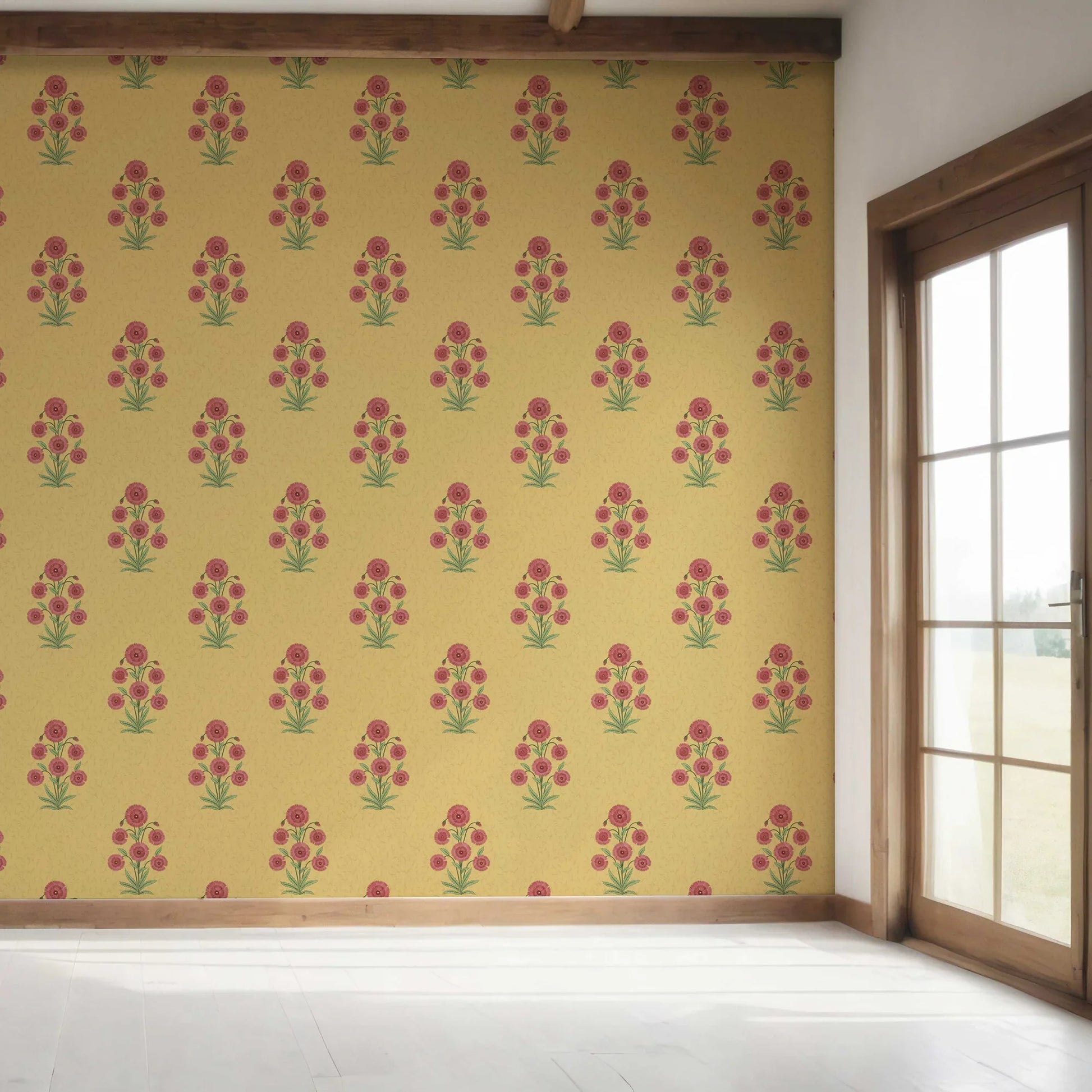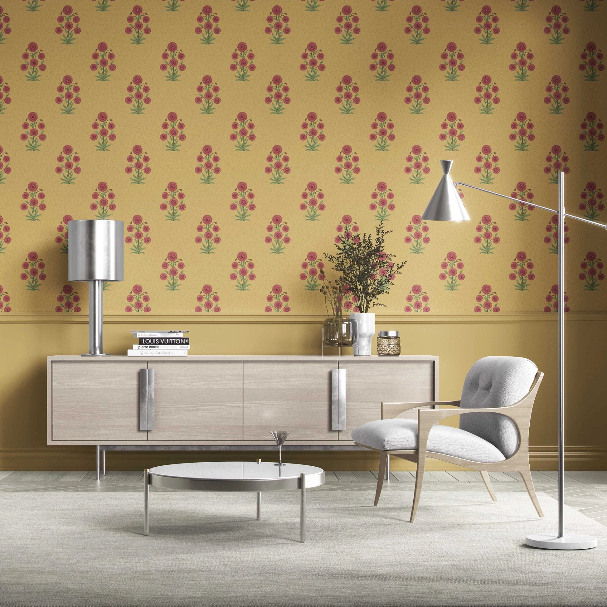 The Gulraaz Wallpaper brings timeless floral artistry into your interiors with its graceful bouquet-inspired motifs. Each cluster of blossoms is delicately arranged to evoke the charm of traditional hand-block prints, while the repeating pattern creates a sense of balance and rhythm across your walls.