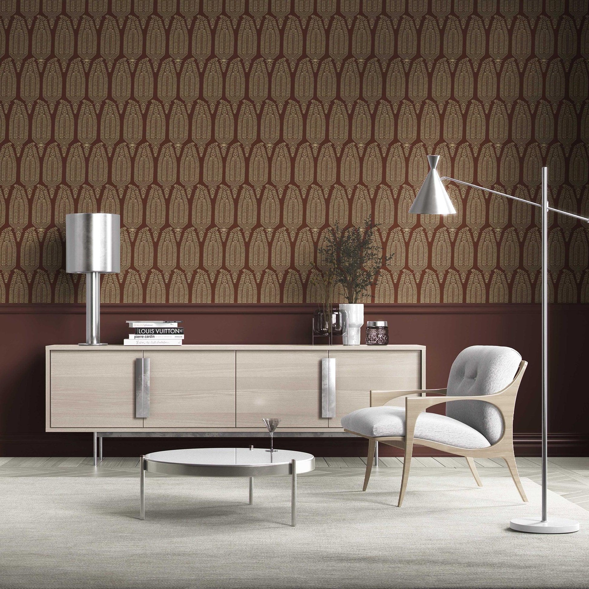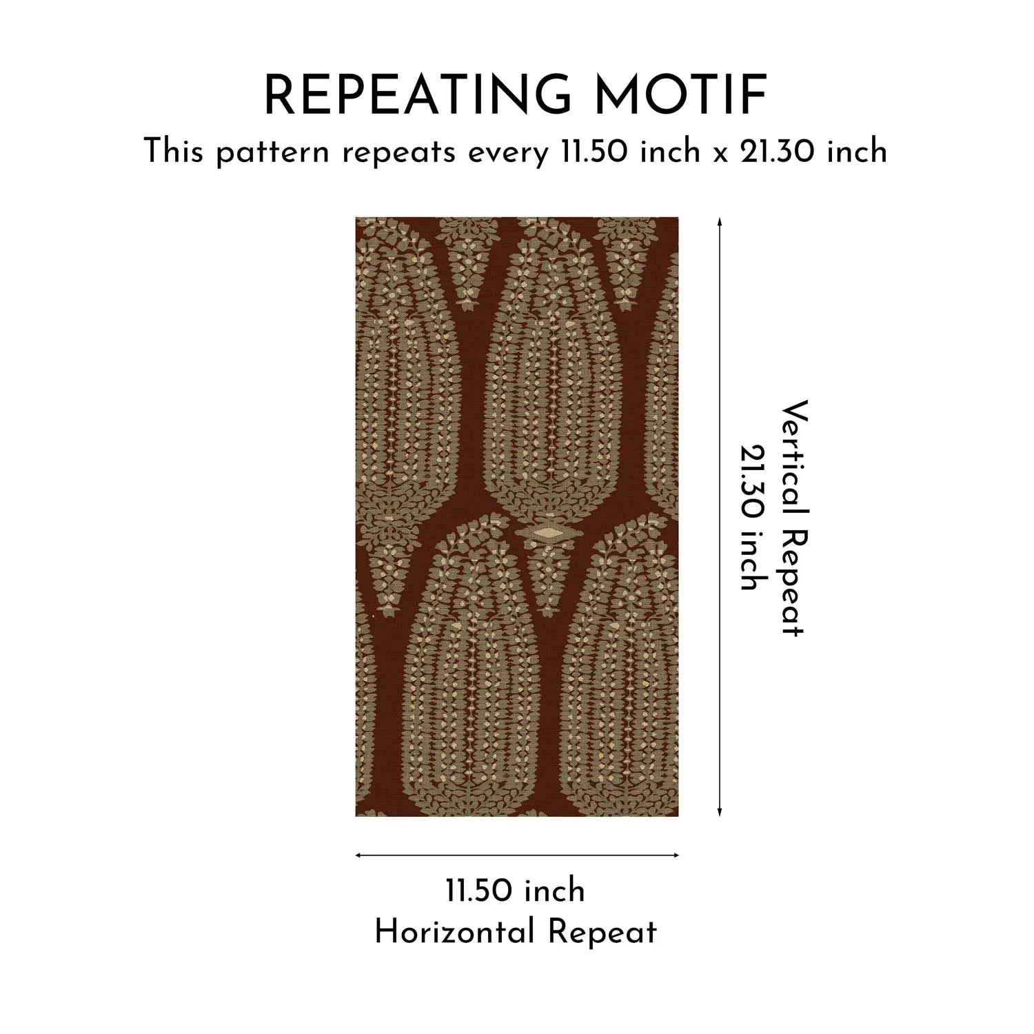 Ideal for accent walls, passageways, dining areas, or boutique-style living spaces, this wallpaper brings a touch of Rajasthani artistry to your home. With its elongated motifs and structured layout, it adds height and depth to any room while celebrating the opulence of heritage craftsmanship.