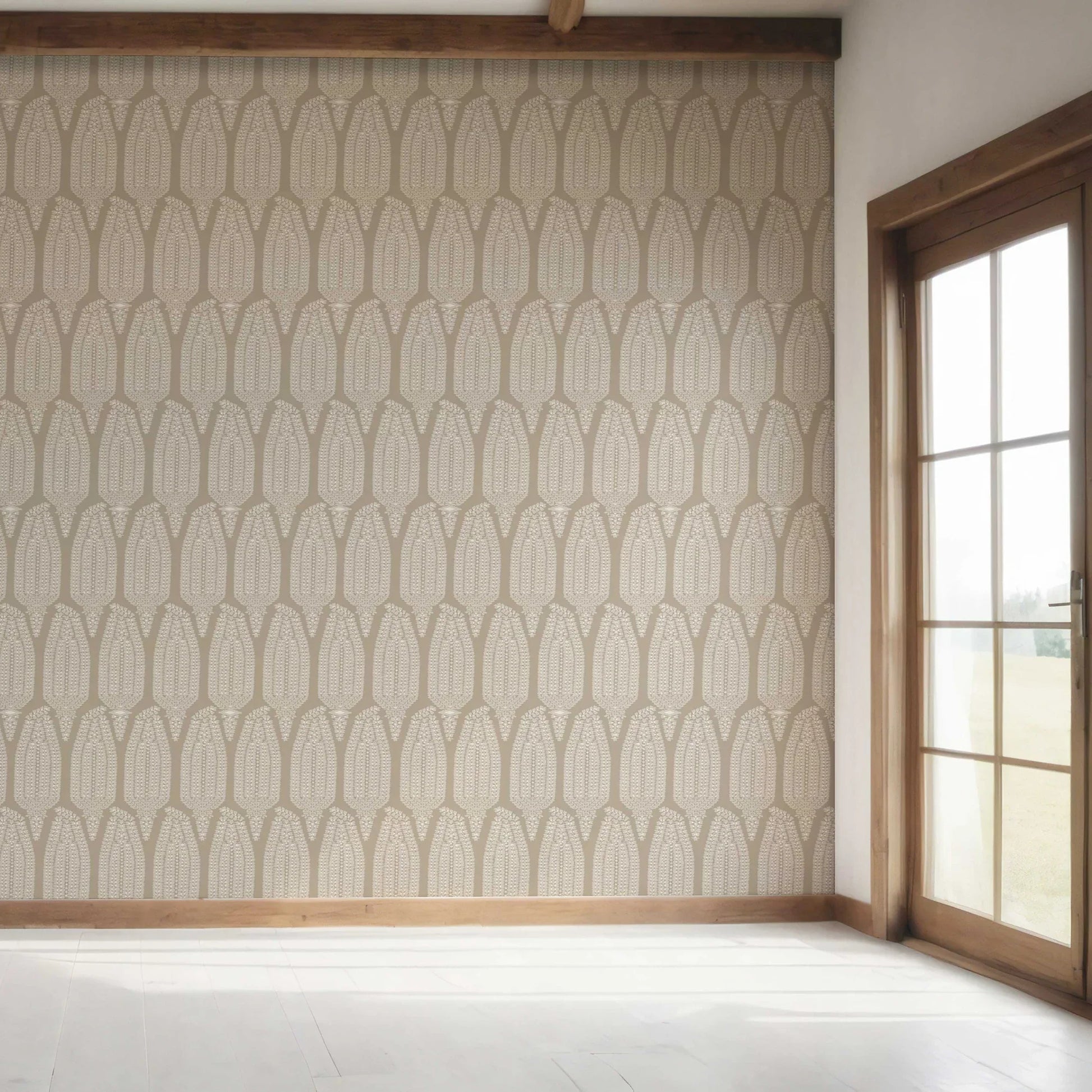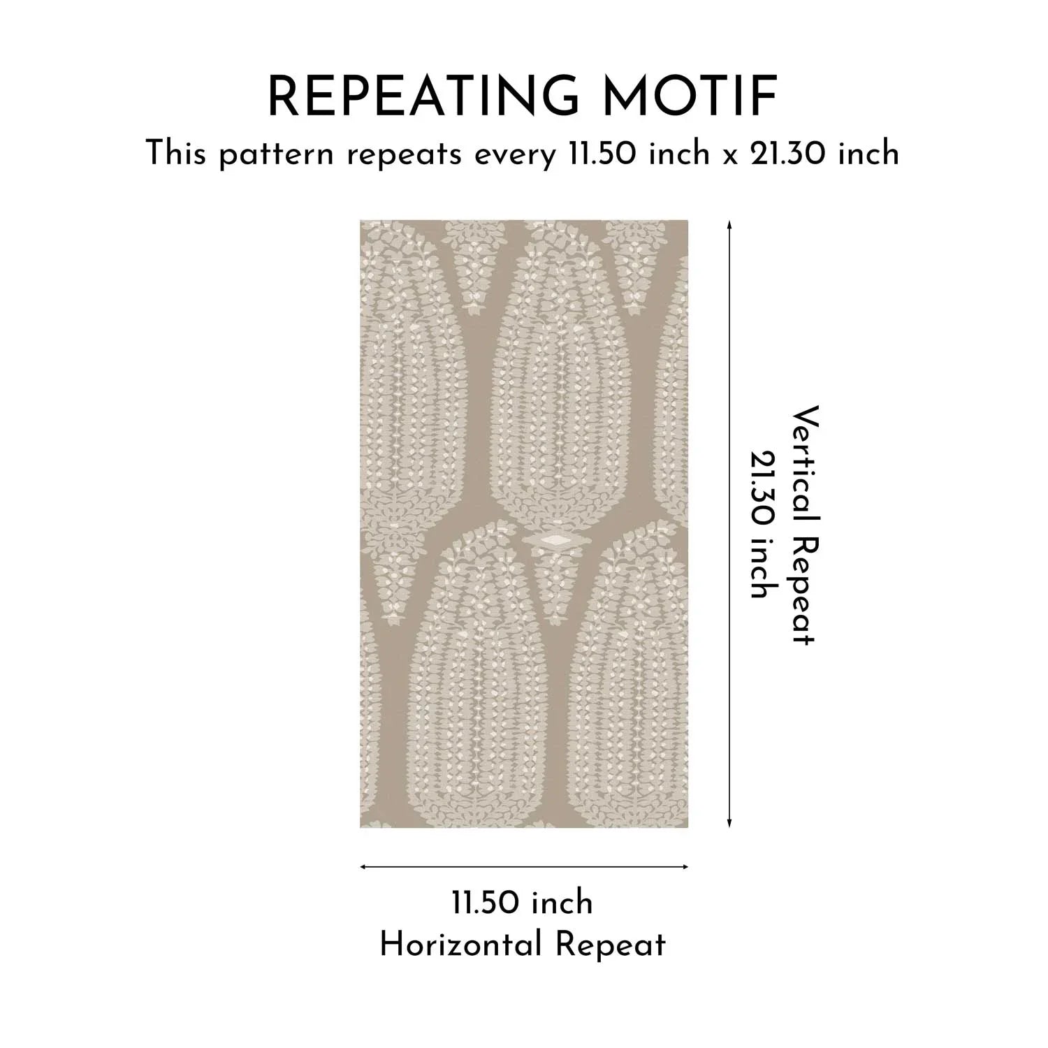 Ideal for accent walls, passageways, dining areas, or boutique-style living spaces, this wallpaper brings a touch of Rajasthani artistry to your home. With its elongated motifs and structured layout, it adds height and depth to any room while celebrating the opulence of heritage craftsmanship.