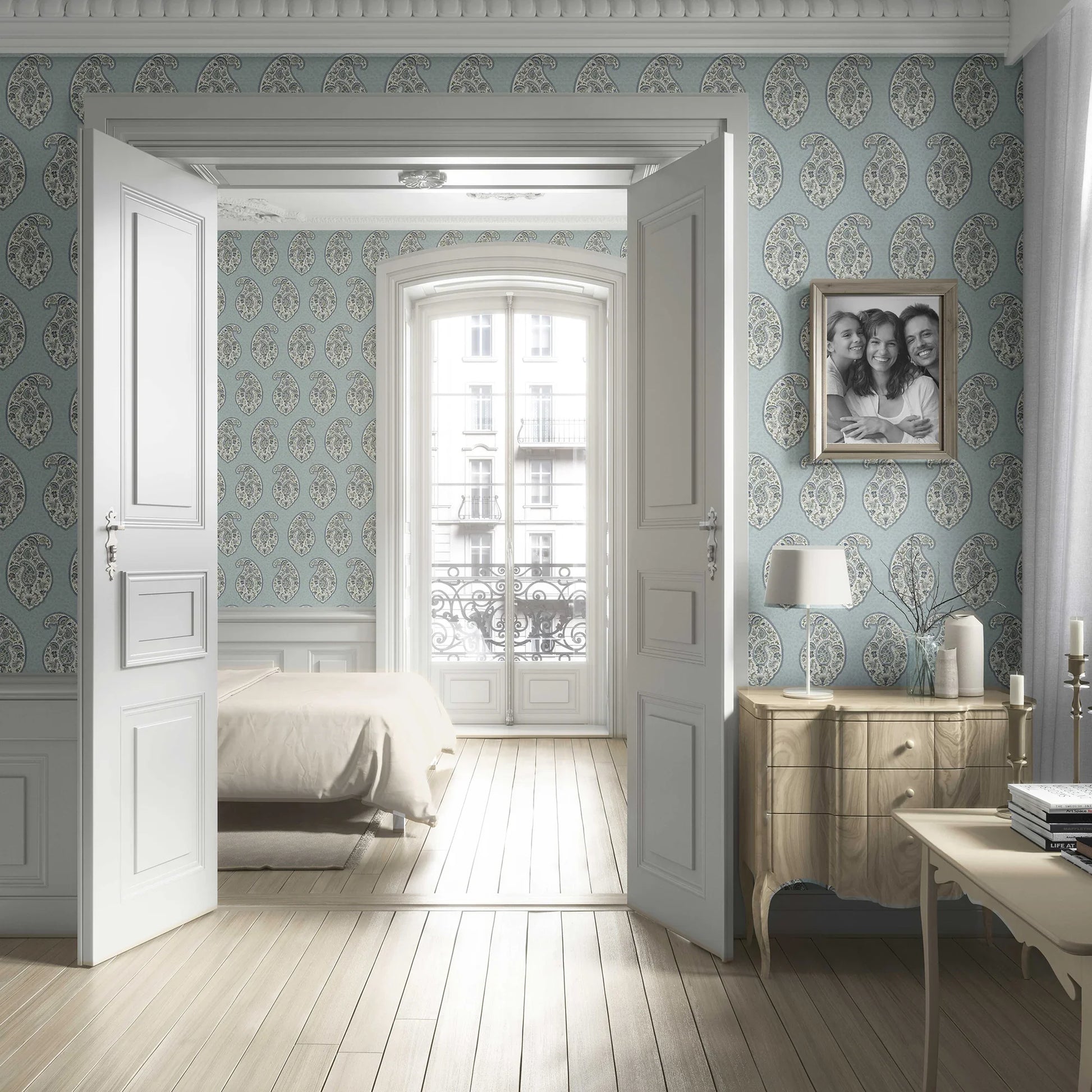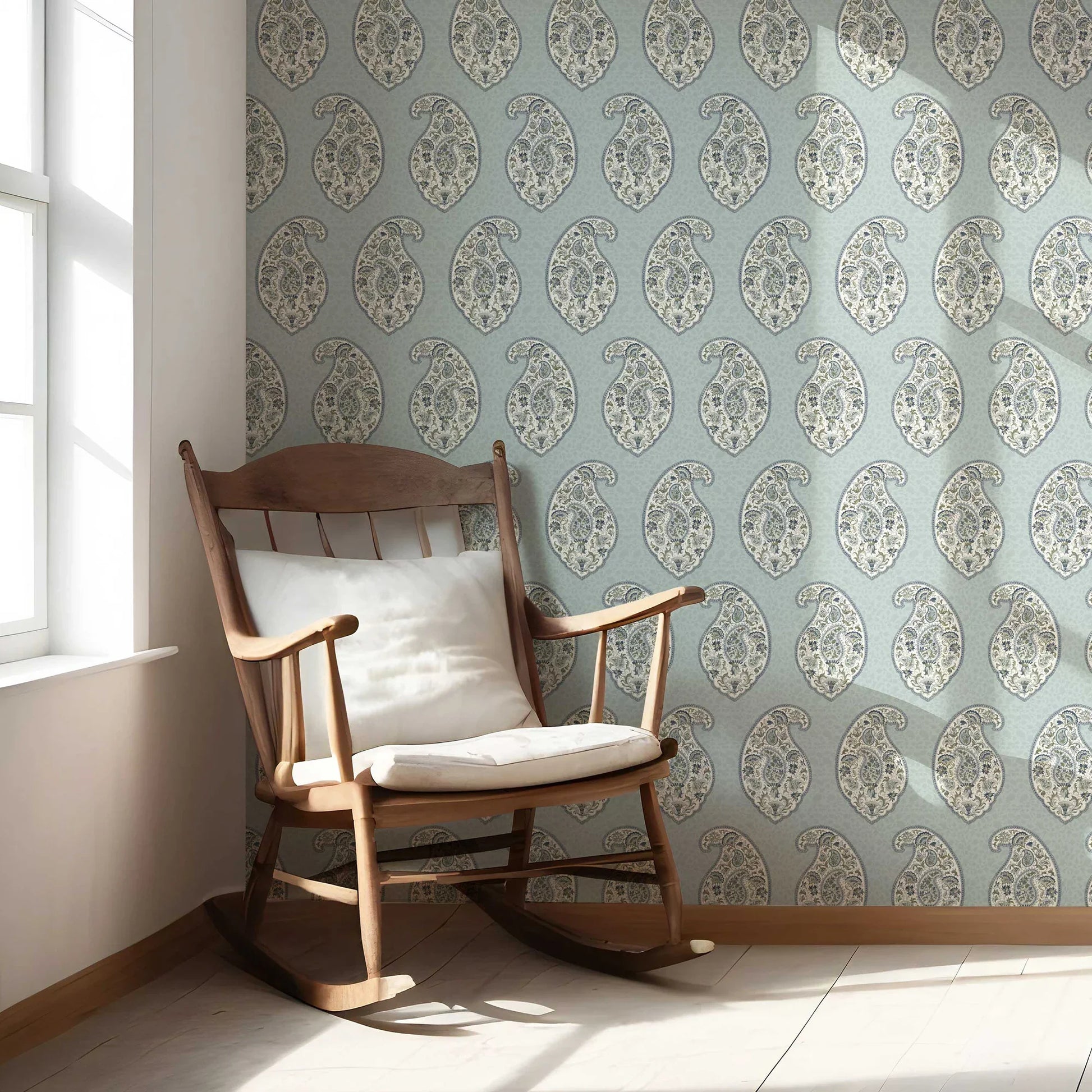 The Kairi Mahal Wallpaper celebrates the timeless charm of the paisley motif—known as “kairi” in India—reimagined with intricate Mughal-inspired detailing. Each teardrop shape is framed with delicate floral vines, creating a sense of movement and elegance across your walls. Perfect for adding a touch of royal artistry to bedrooms, dining spaces, or boutique interiors, this design bridges centuries of heritage with a contemporary palette.