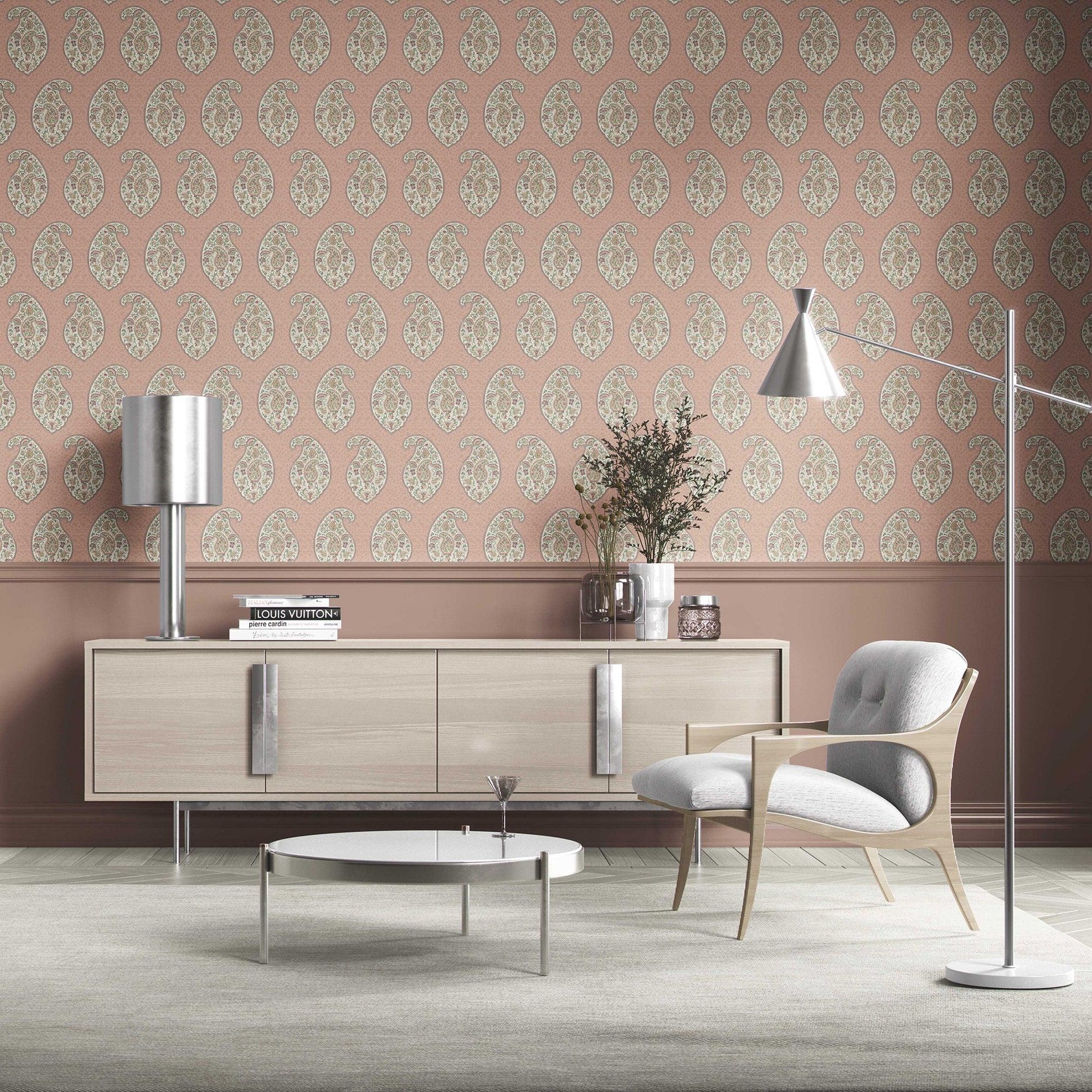 The Kairi Mahal Wallpaper celebrates the timeless charm of the paisley motif—known as “kairi” in India—reimagined with intricate Mughal-inspired detailing. Each teardrop shape is framed with delicate floral vines, creating a sense of movement and elegance across your walls. Perfect for adding a touch of royal artistry to bedrooms, dining spaces, or boutique interiors, this design bridges centuries of heritage with a contemporary palette.