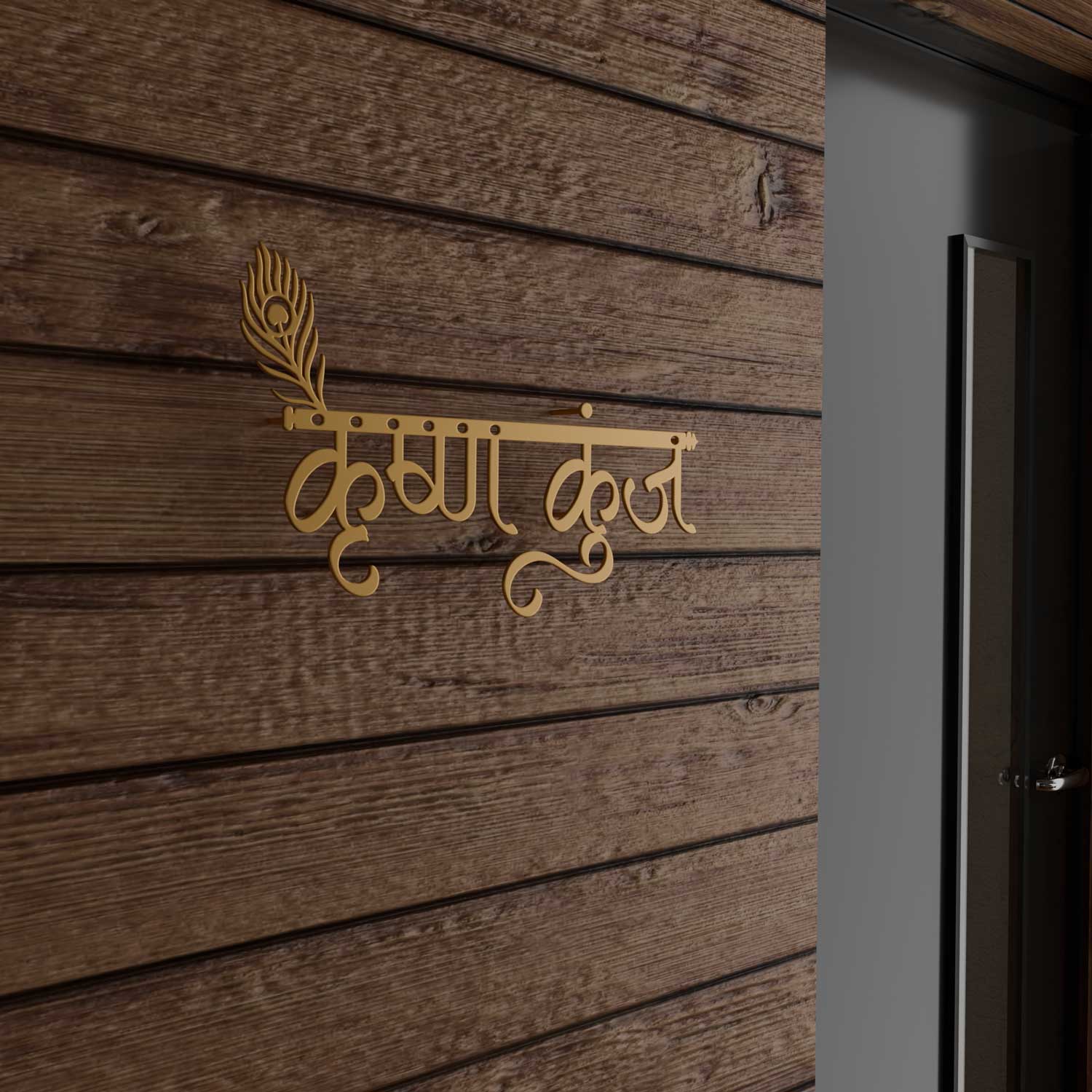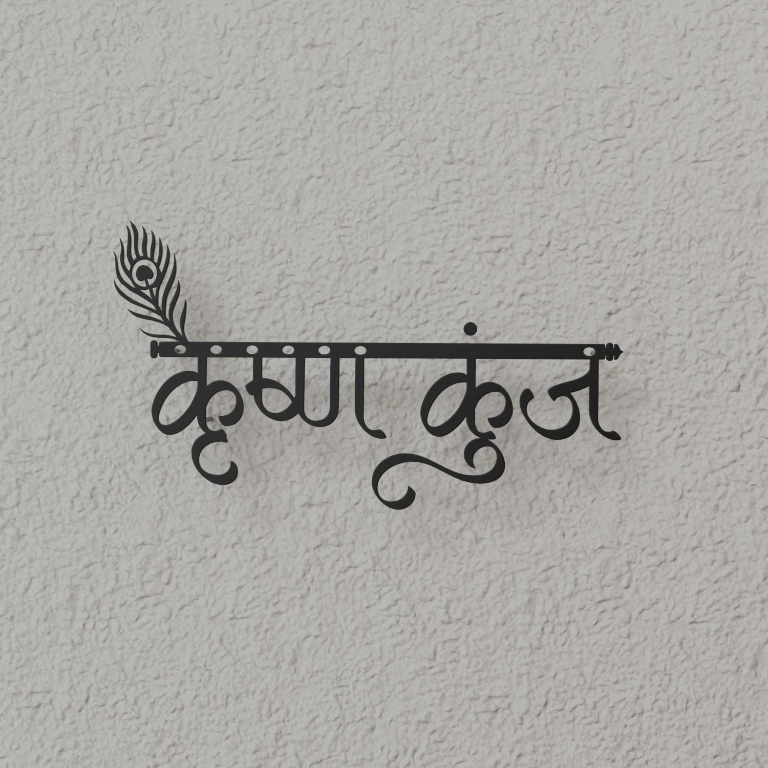 Krishna Kunj - Hindi Calligraphy Cutout Steel Name Plate