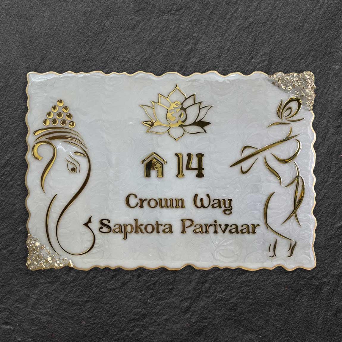 Krishnaganesh - Pearl White Swirl Design Resin Nameplate