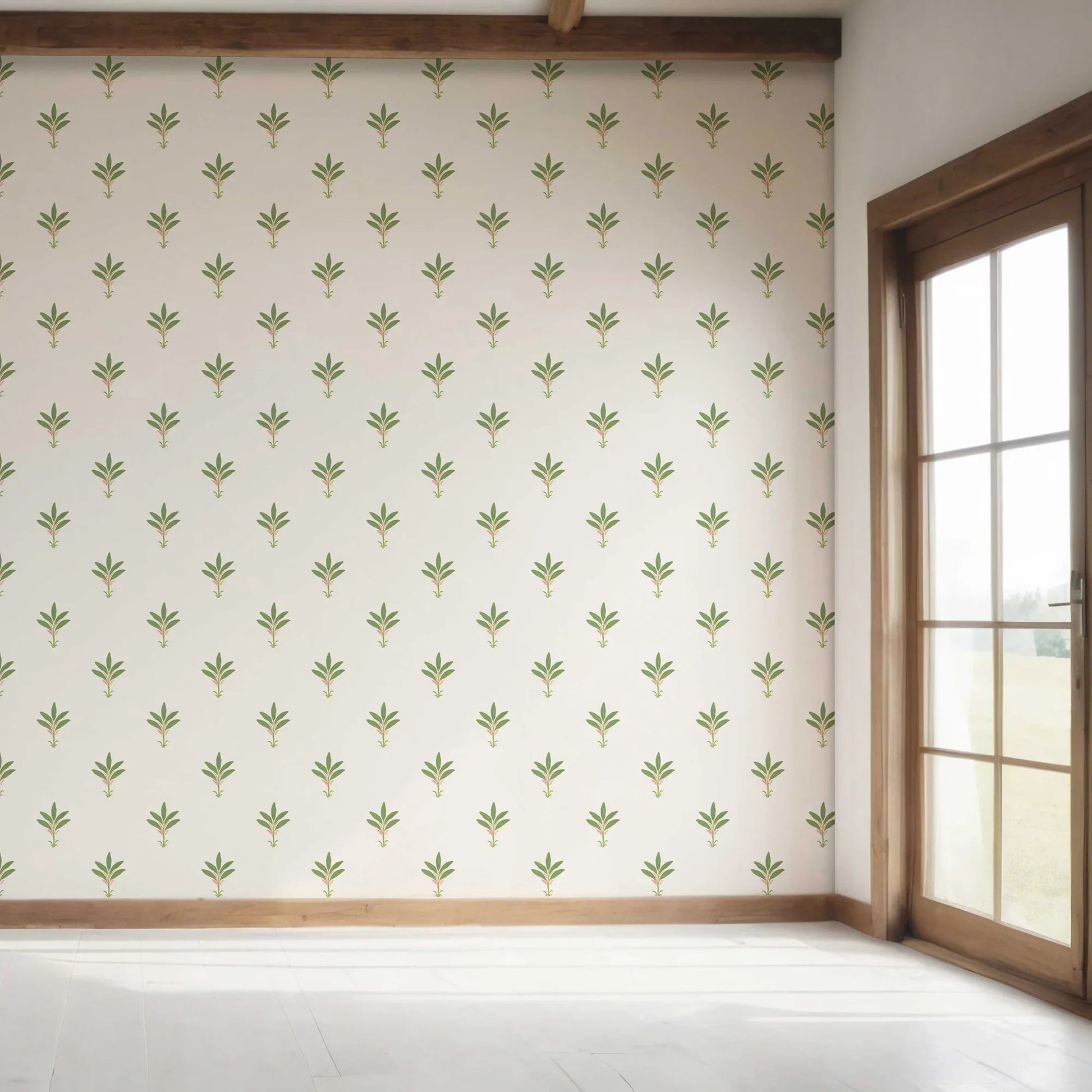 The Kunj Wallpaper from our Rang Mahal series brings the quiet beauty of nature indoors. Inspired by the charm of Indian garden groves, its delicate sprig motif repeats with graceful rhythm, creating a soothing sense of balance on your walls.