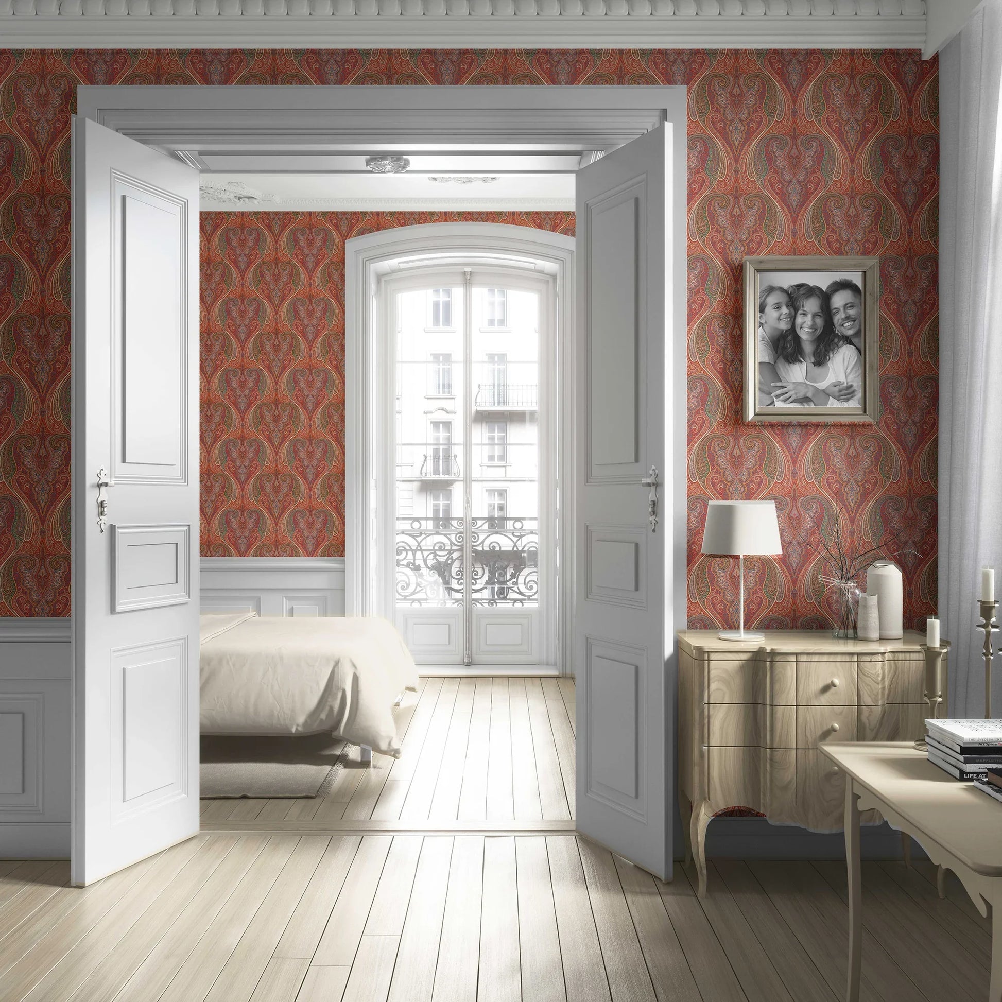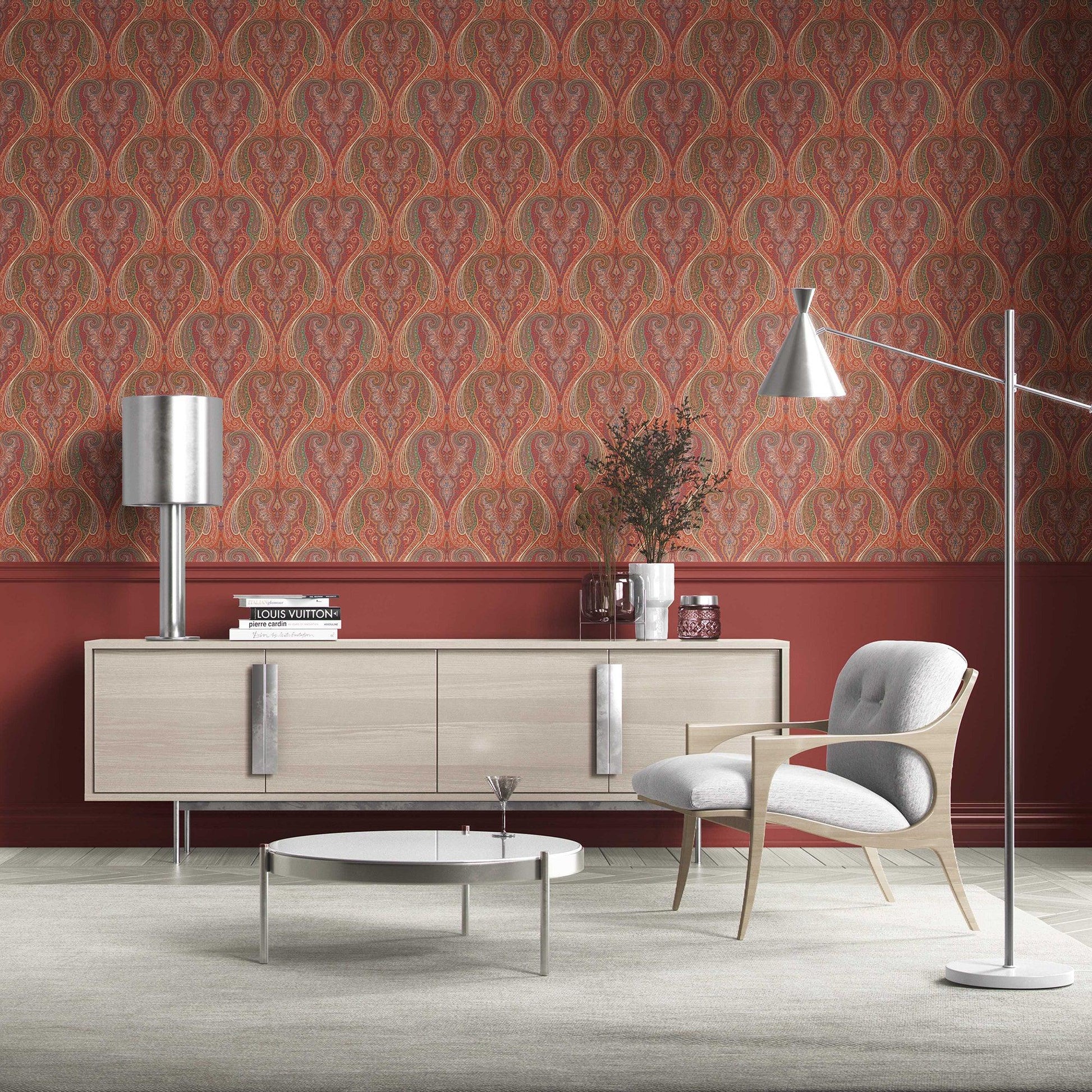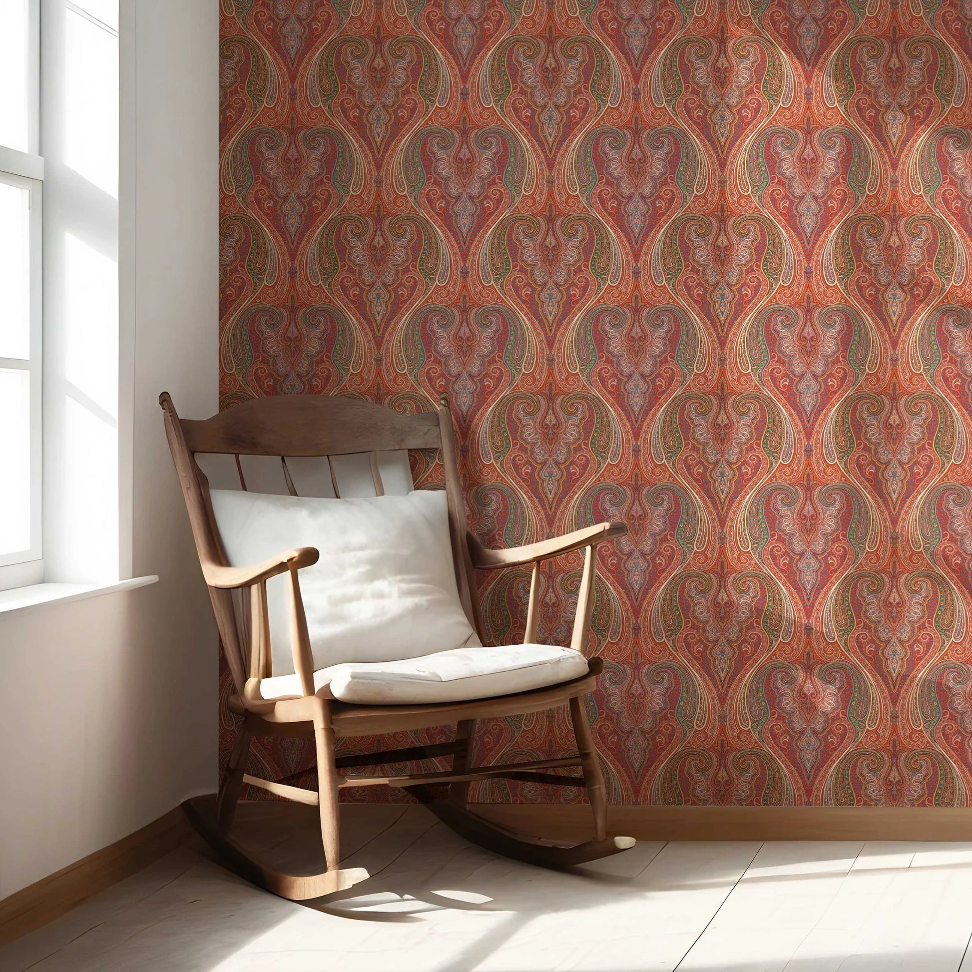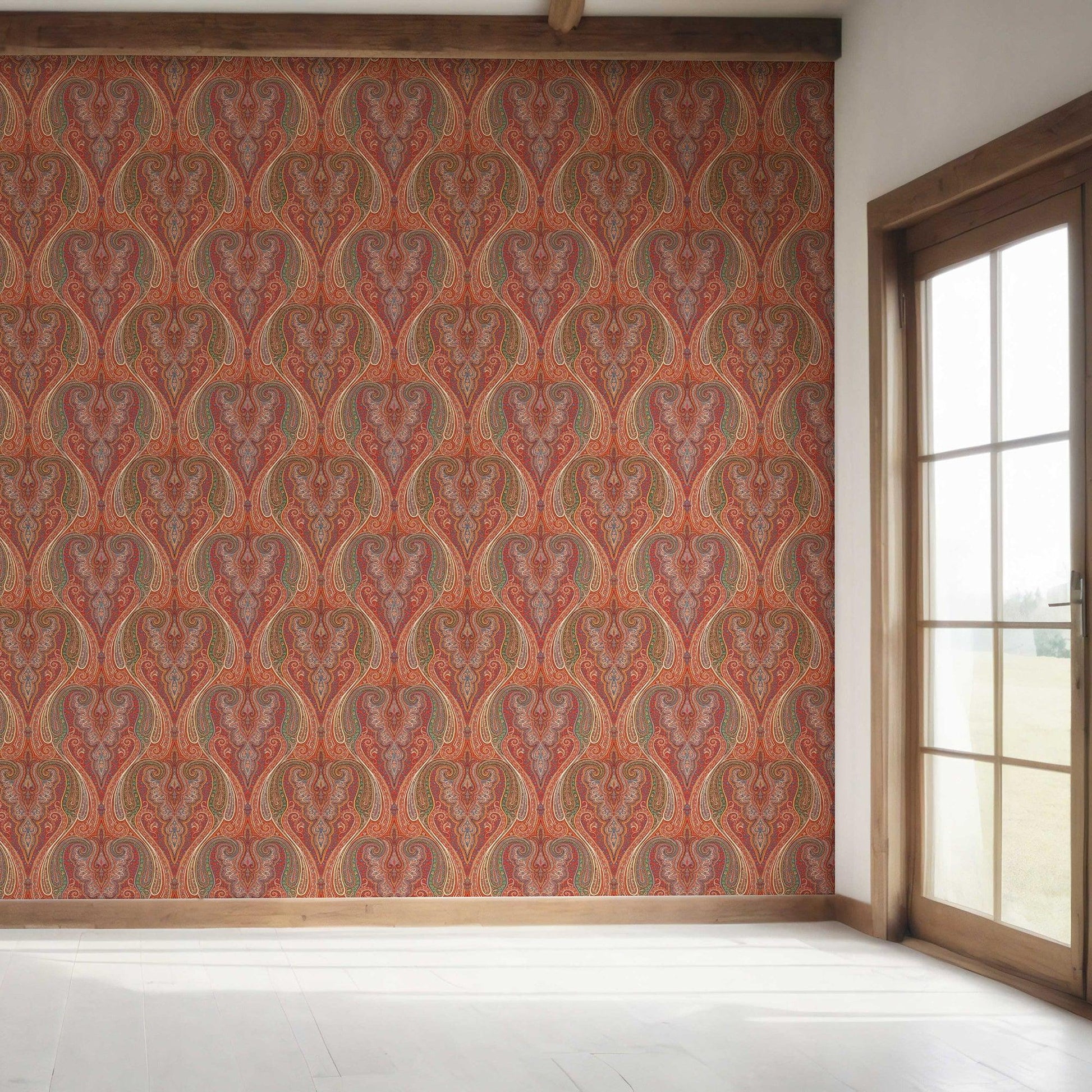 Bring the grandeur of Mughal courts and intimate gatherings to your walls with the Mehfil Wallpaper. Inspired by traditional paisley motifs and intricate textile artistry, this design celebrates timeless craftsmanship. The ornamental flourishes and detailed filigree patterns create a sense of opulence, perfect for elevating both classic and contemporary interiors.