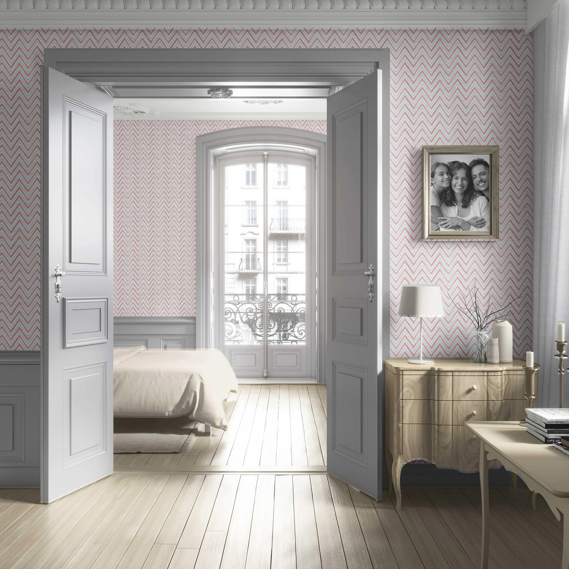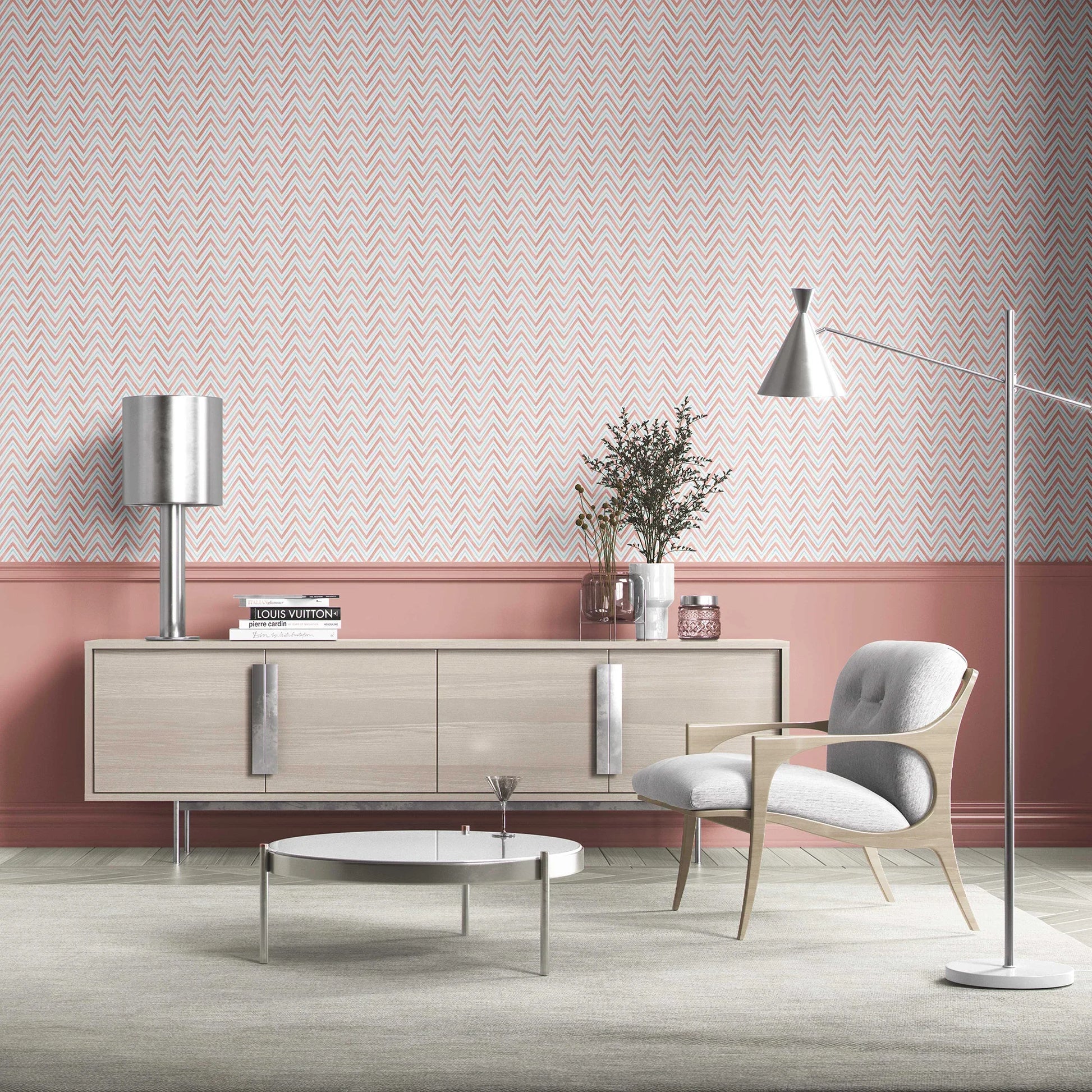 Inspired by the timeless arches of Indian palaces, the Mehraab Wallpaper brings a touch of heritage elegance into modern interiors. Its chevron-like pattern, hand-rendered with painterly strokes, creates a rhythmic flow reminiscent of mehraabs that once framed royal courtyards and havelis.