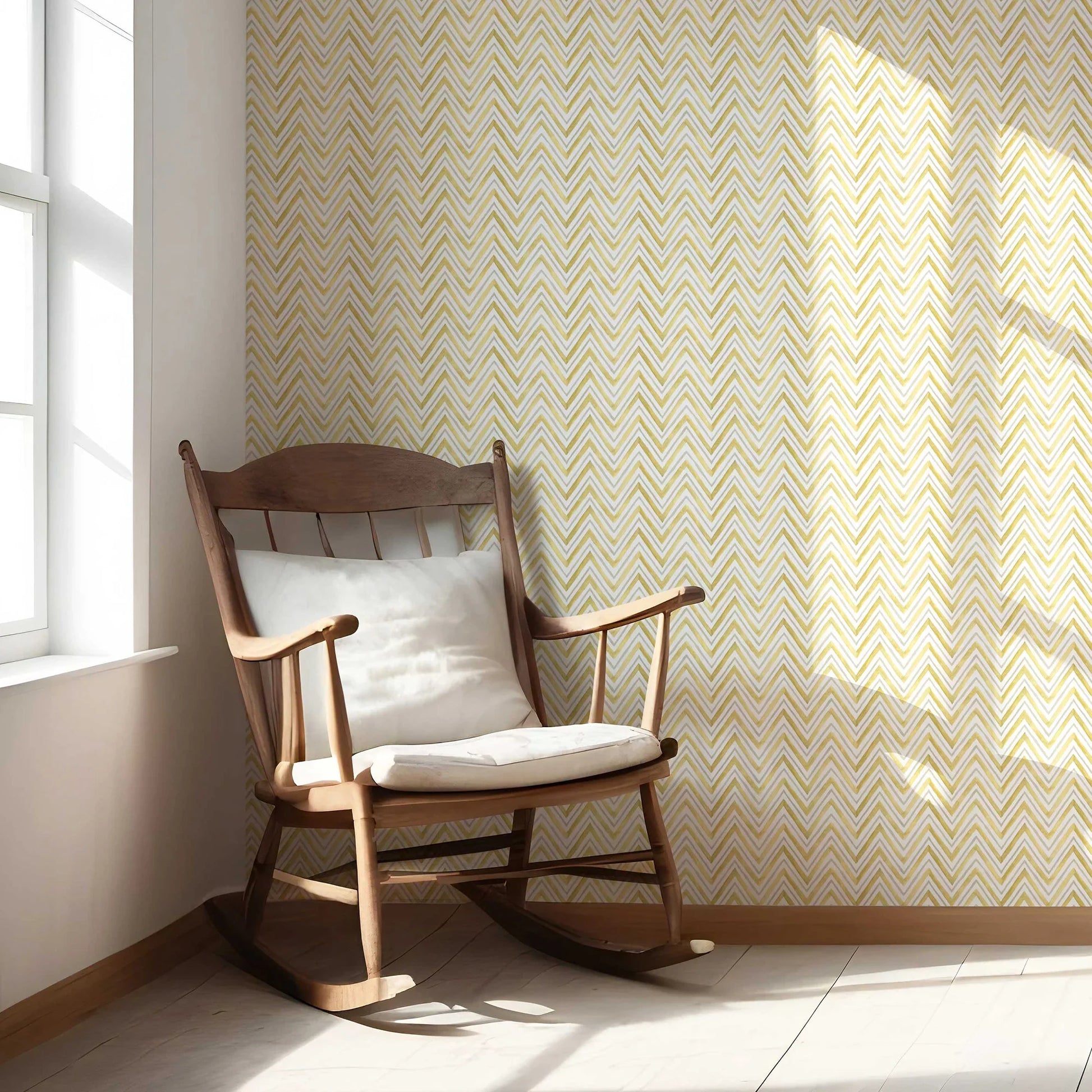 Inspired by the timeless arches of Indian palaces, the Mehraab Wallpaper brings a touch of heritage elegance into modern interiors. Its chevron-like pattern, hand-rendered with painterly strokes, creates a rhythmic flow reminiscent of mehraabs that once framed royal courtyards and havelis.