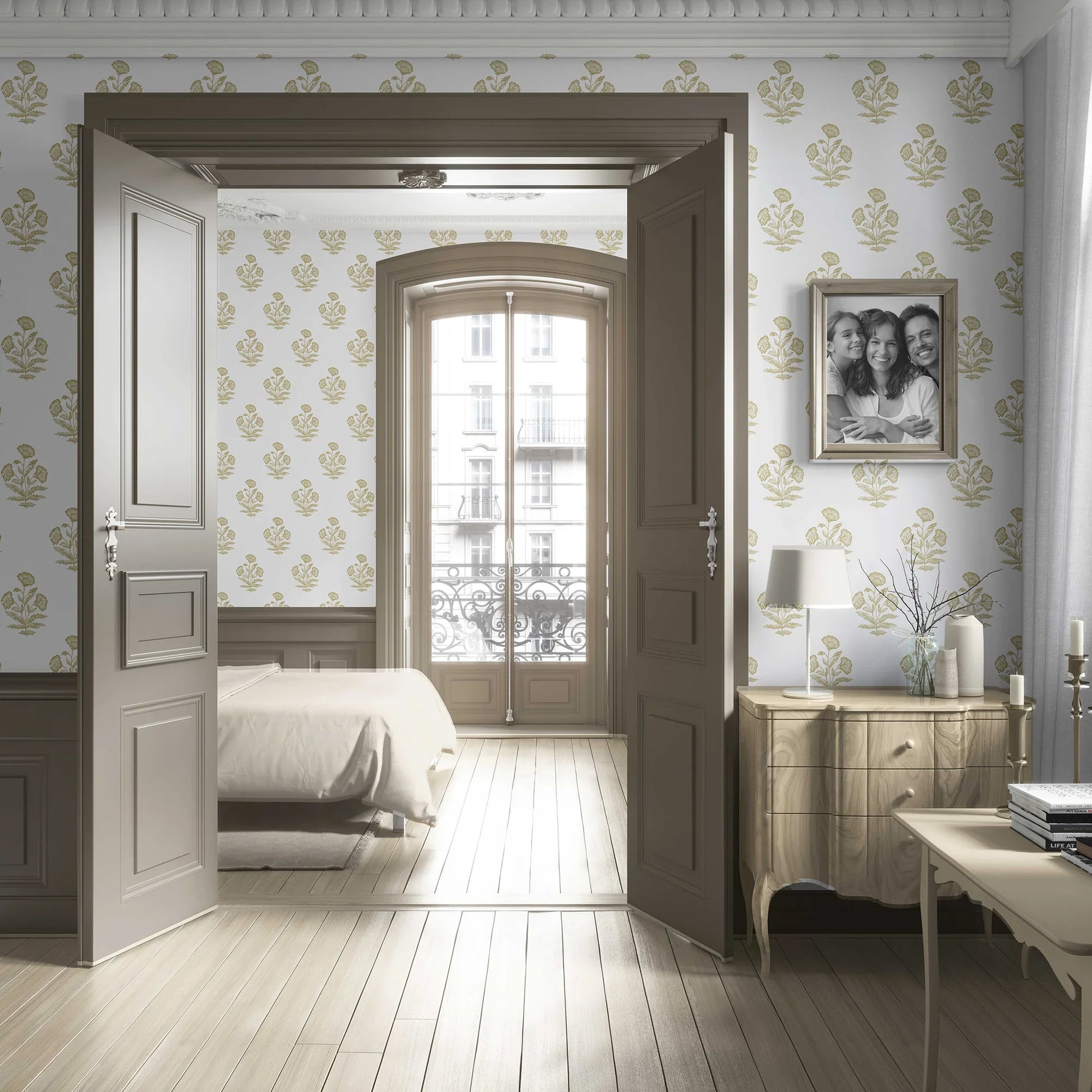 Ideal for both statement walls and full-room applications, Mehrangarh Bloom blends Mughal-inspired elegance with a soft, contemporary aesthetic. Its refined detailing and versatile palette make it a beautiful choice for living rooms, bedrooms, dining spaces, or boutique commercial interiors.
