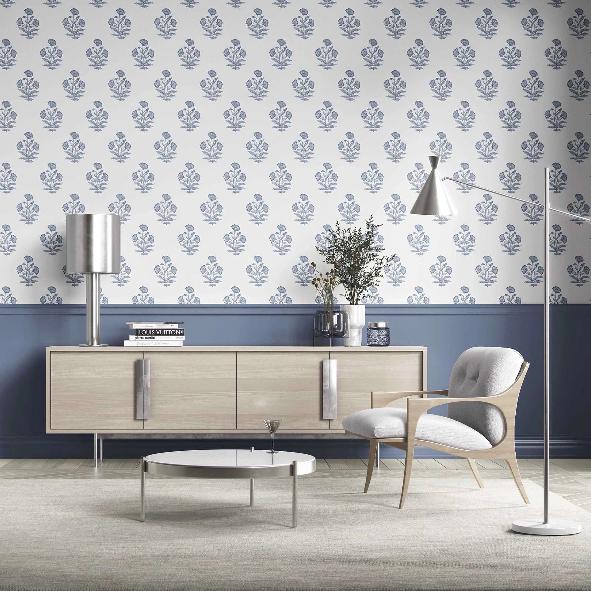 Mehrangarh Bloom Wallpaper - Indigo Mist