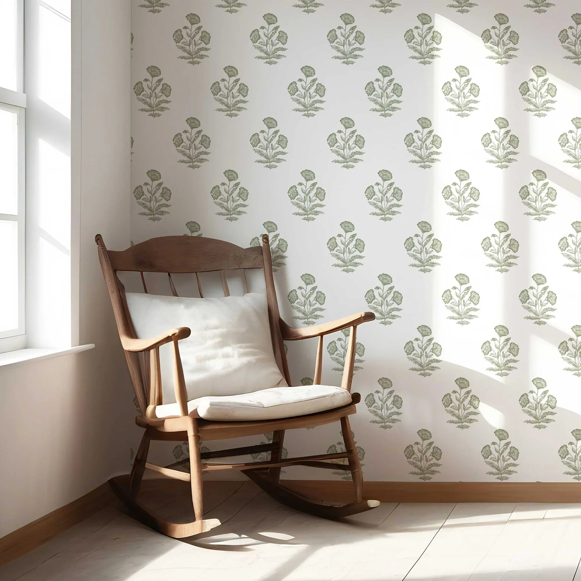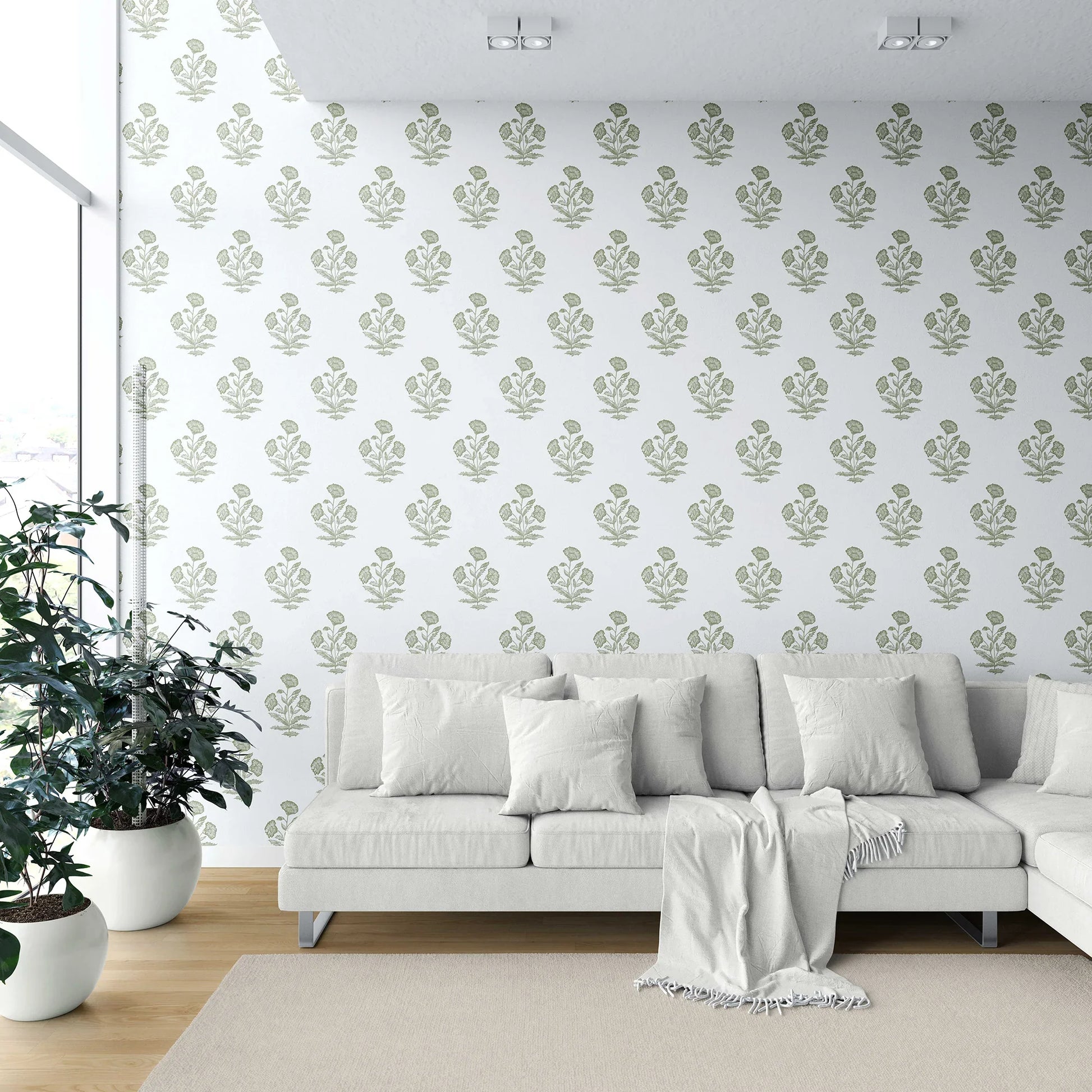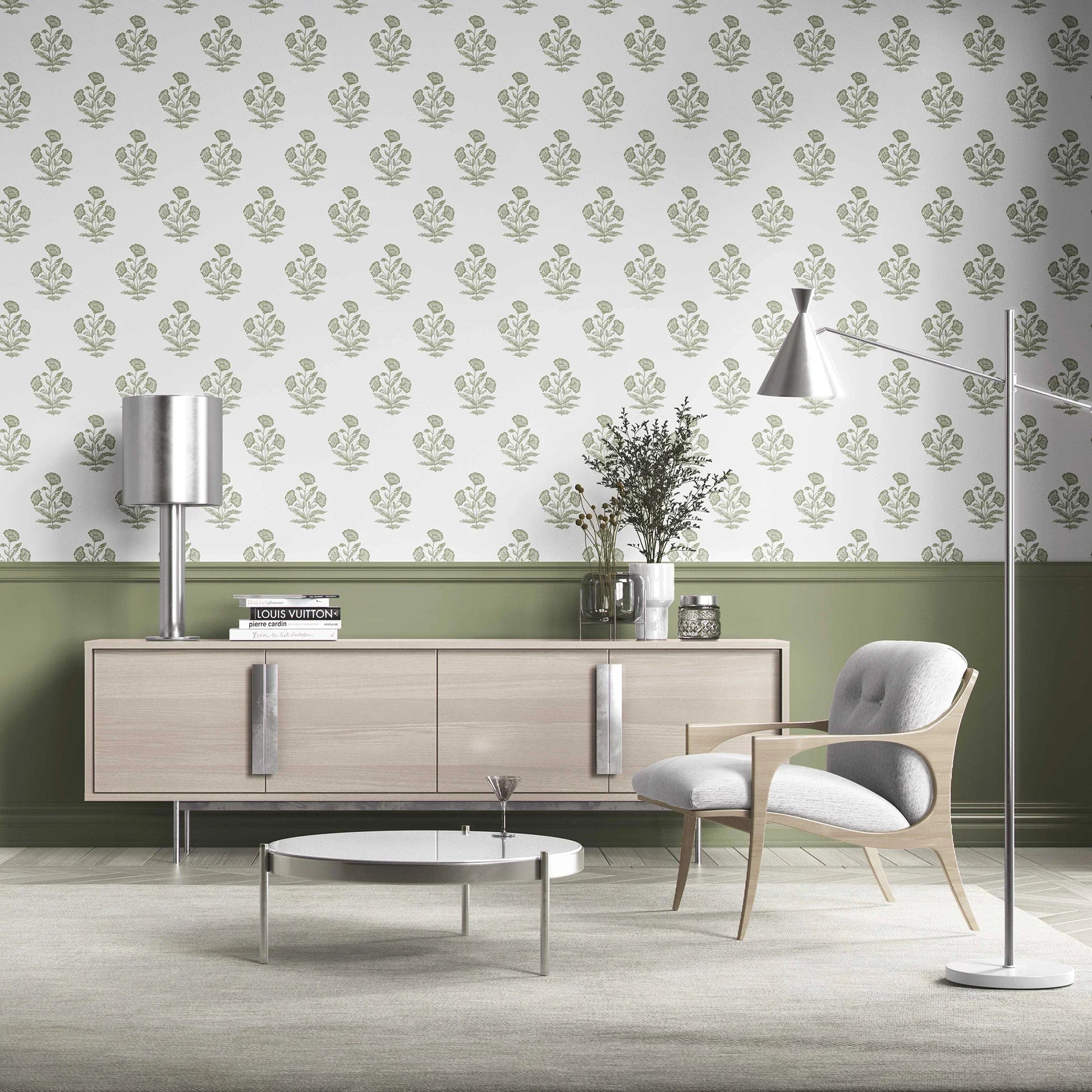 Mehrangarh Bloom Wallpaper - Olive Haze