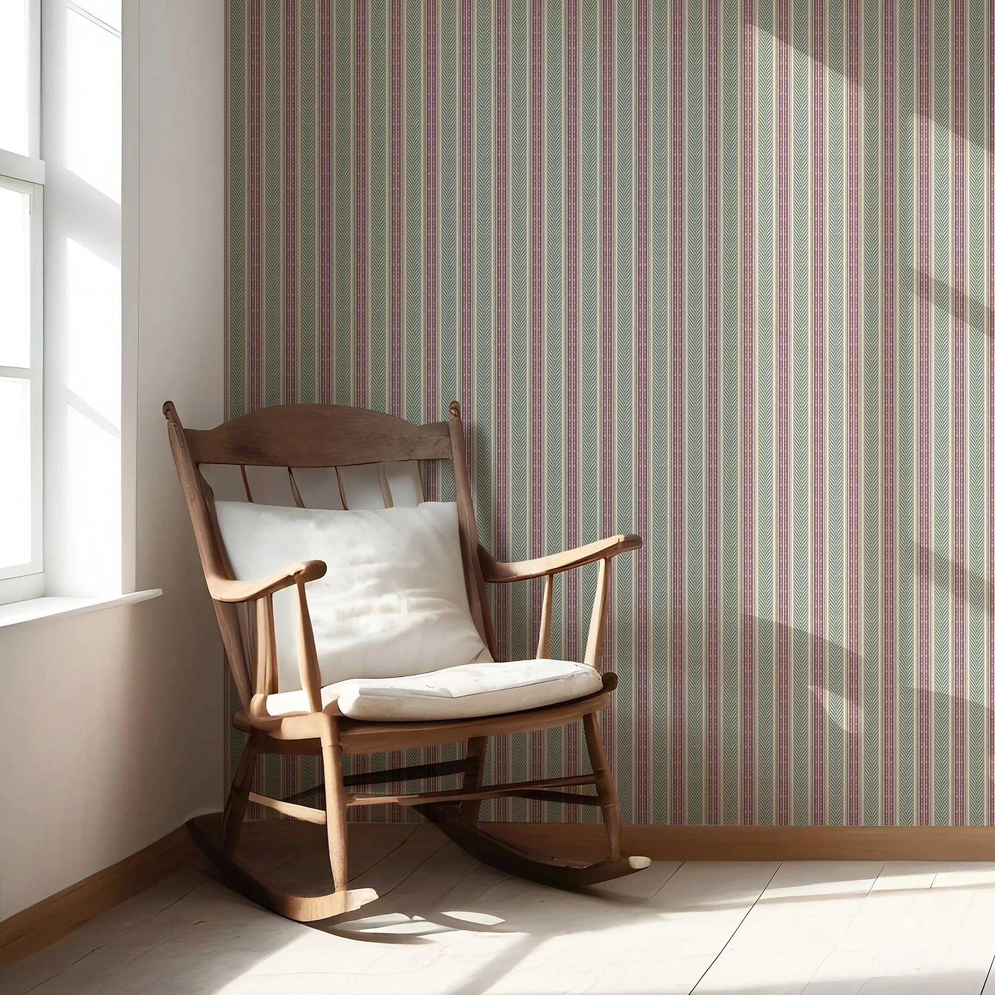 Elevate your interiors with the timeless elegance of the Mehrun Lines Wallpaper, a design inspired by the rich textile traditions of Rajasthan. Featuring intricate chevron patterns framed by delicate ornamental stripes, this wallpaper brings a sense of symmetry and sophistication to any space.