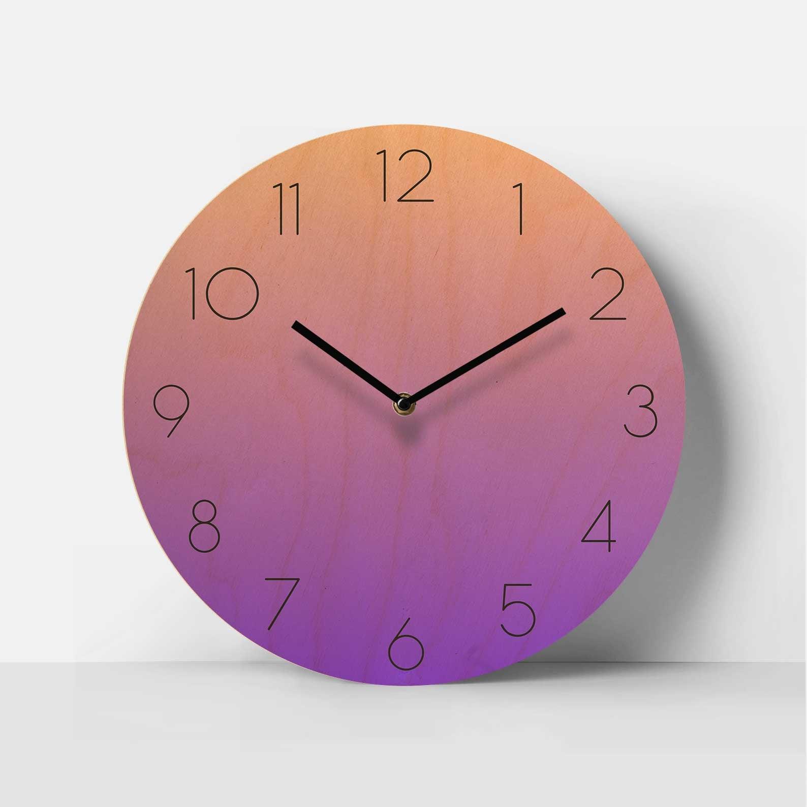Available in three soothing palettes—lavender dusk, sunset orange, and meadow green—the Ombra Birch Clock is ideal for modern homes, serene bedrooms, or minimal workspaces. Its slim, clean numerals keep the look refined and functional, while a silent mechanism ensures tick-free precision.