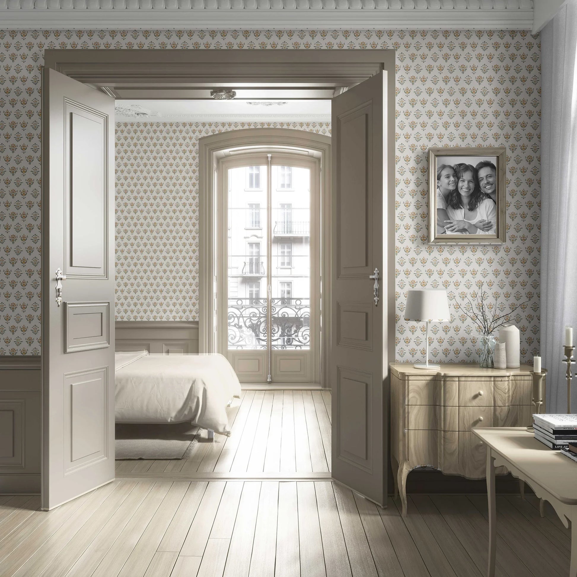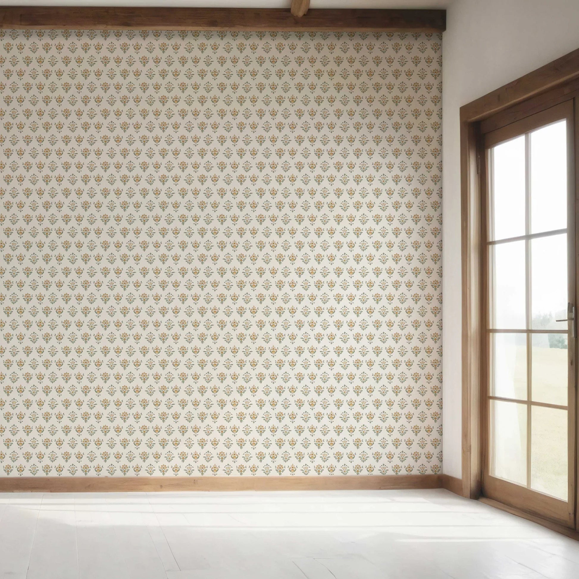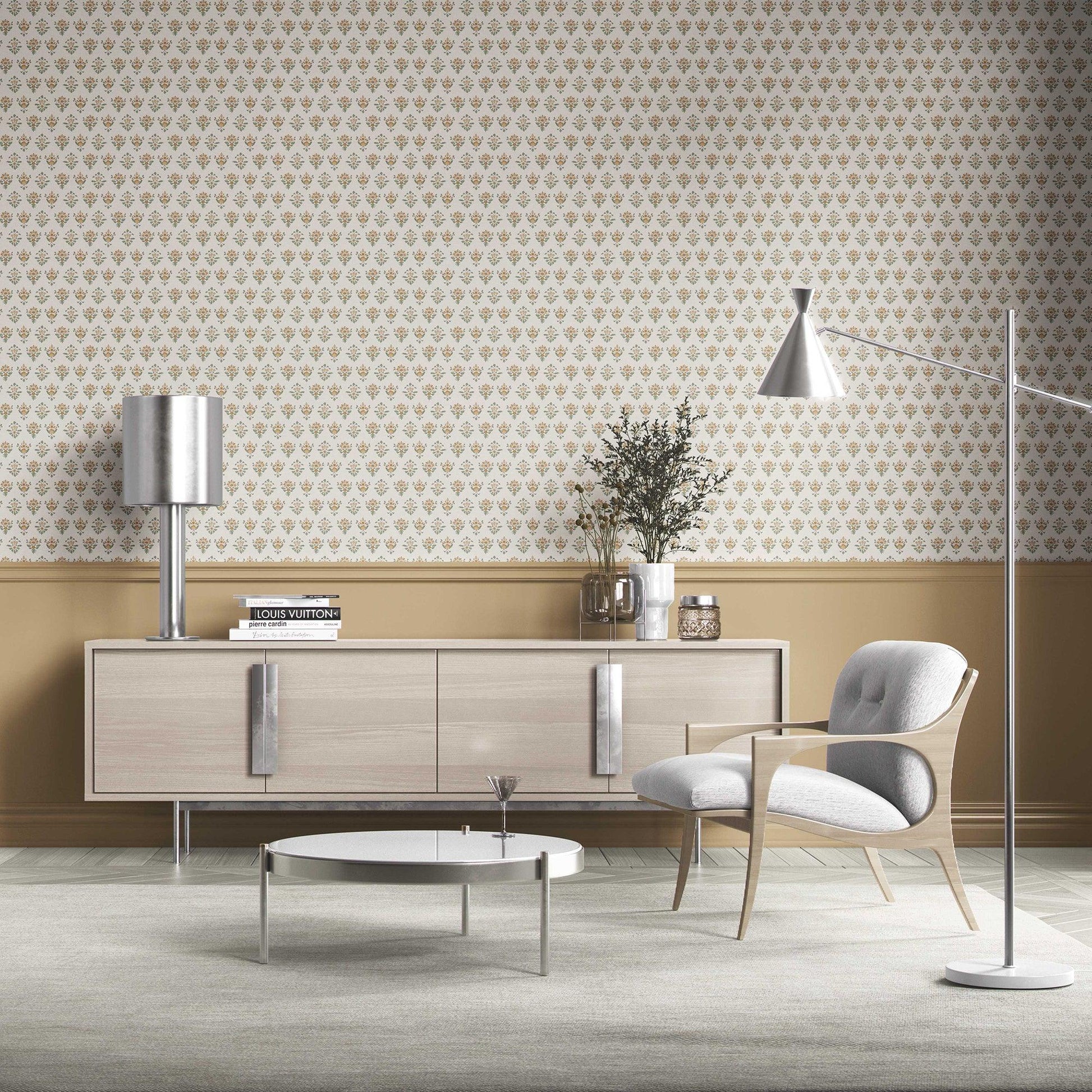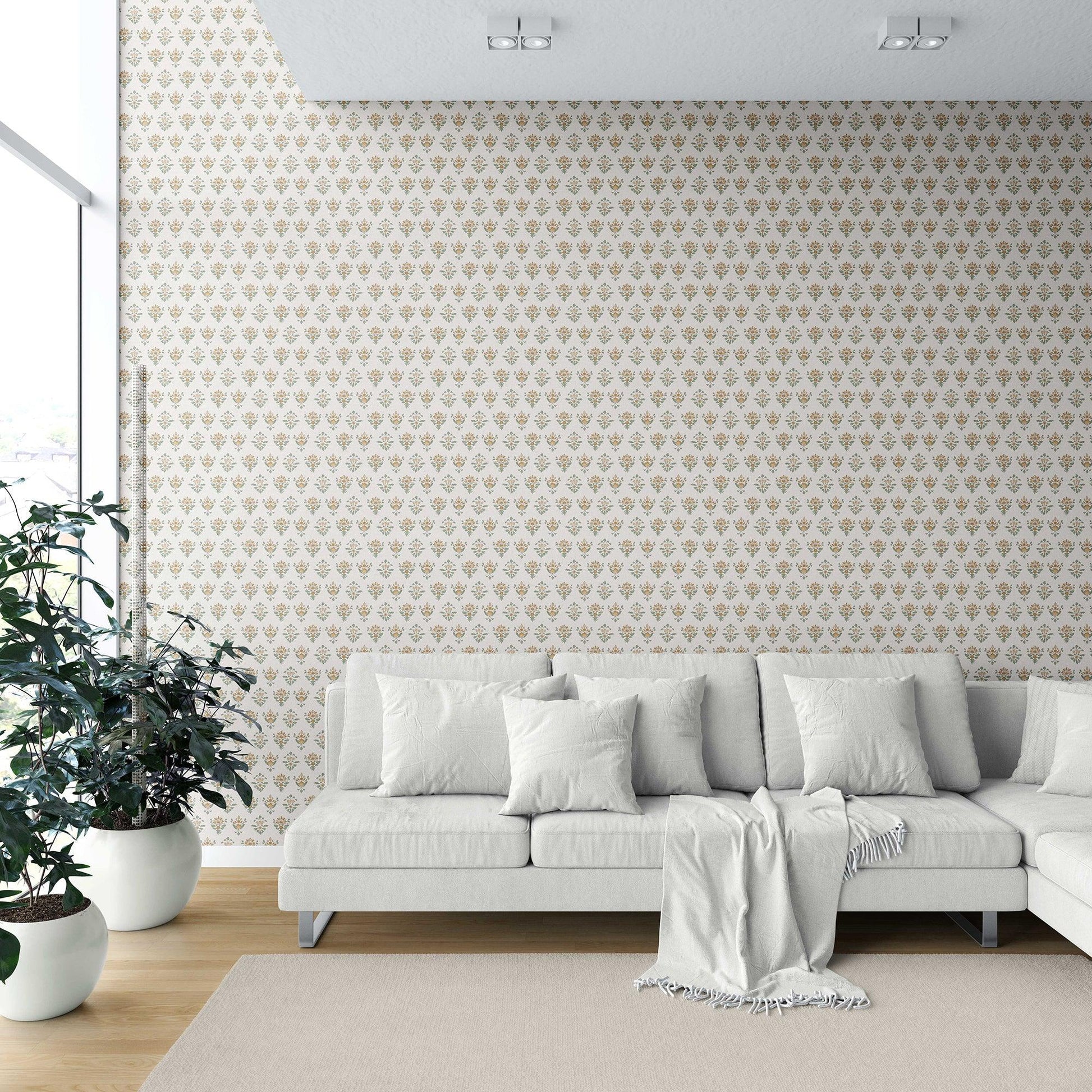 Bring the charm of timeless floral artistry into your home with the Pushpanjali Wallpaper. Inspired by traditional Indian block prints, this design showcases delicate hand-drawn floral motifs arranged in a neat, repeating pattern. The understated texture and refined palette make it a versatile choice for adding elegance to living rooms, bedrooms, dining areas, or hallways.