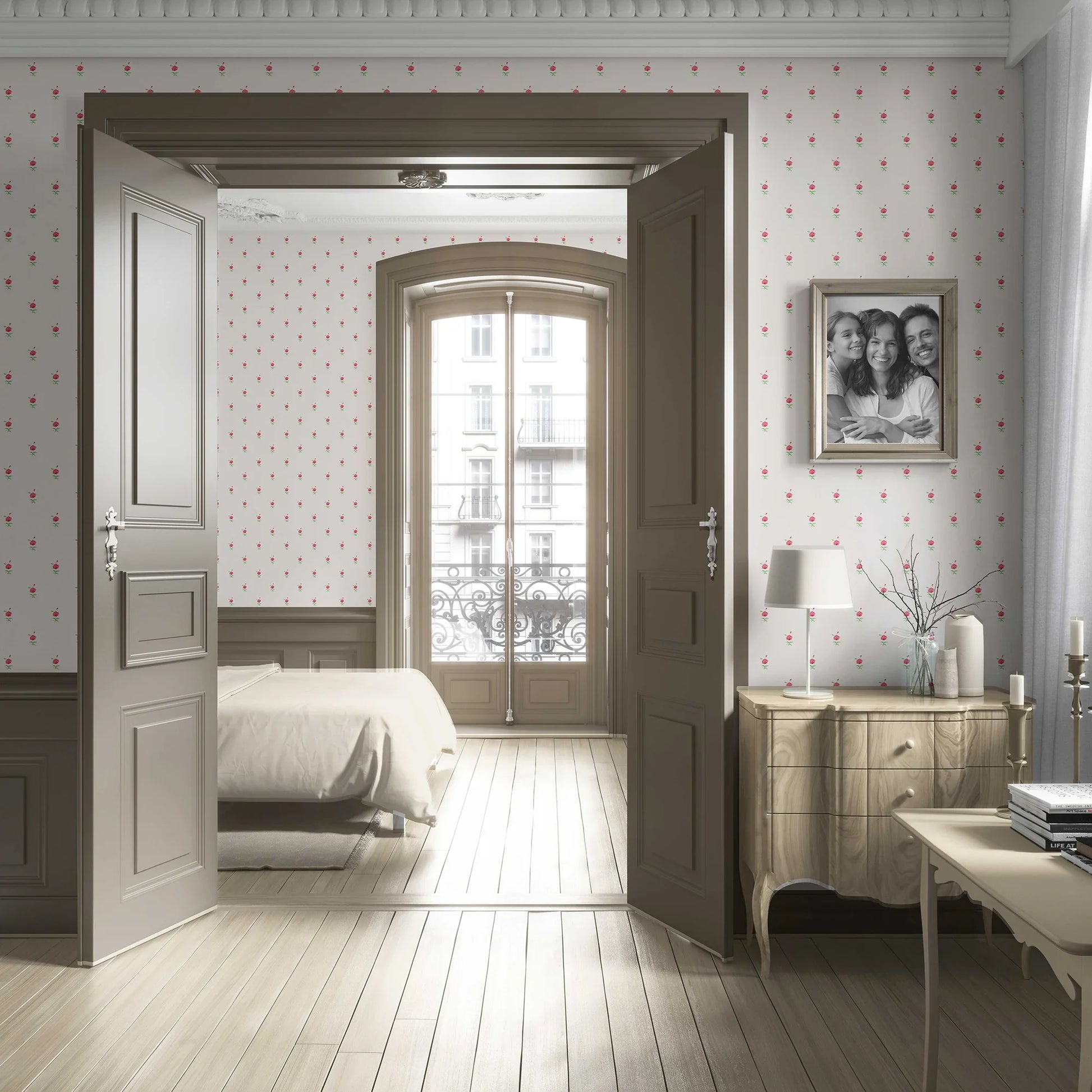 The Roshanara Wallpaper brings a timeless charm to your walls with its delicate floral motifs, inspired by Mughal garden artistry. Each bloom is arranged in a graceful repeat, creating a sense of rhythm and refinement that feels both classic and fresh.