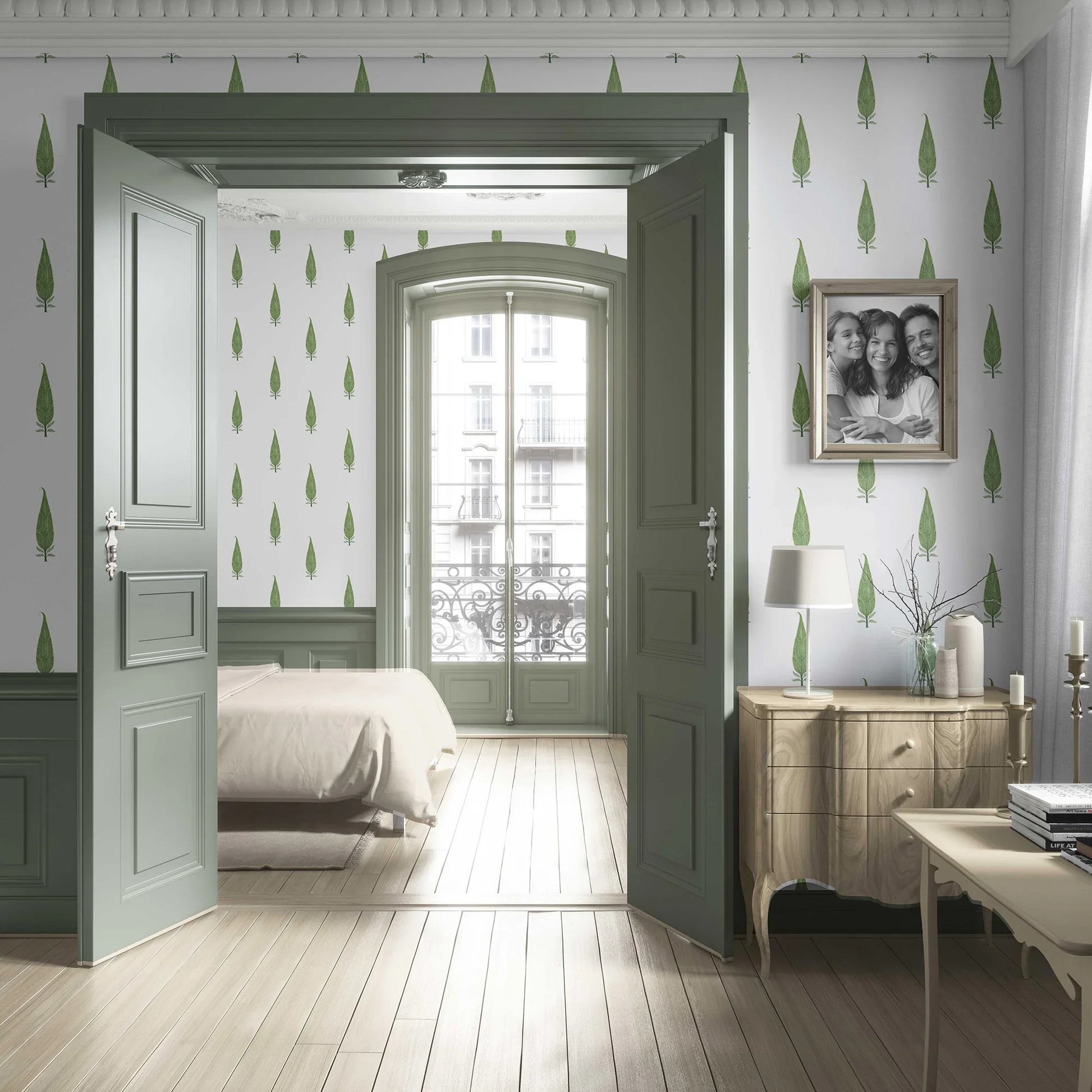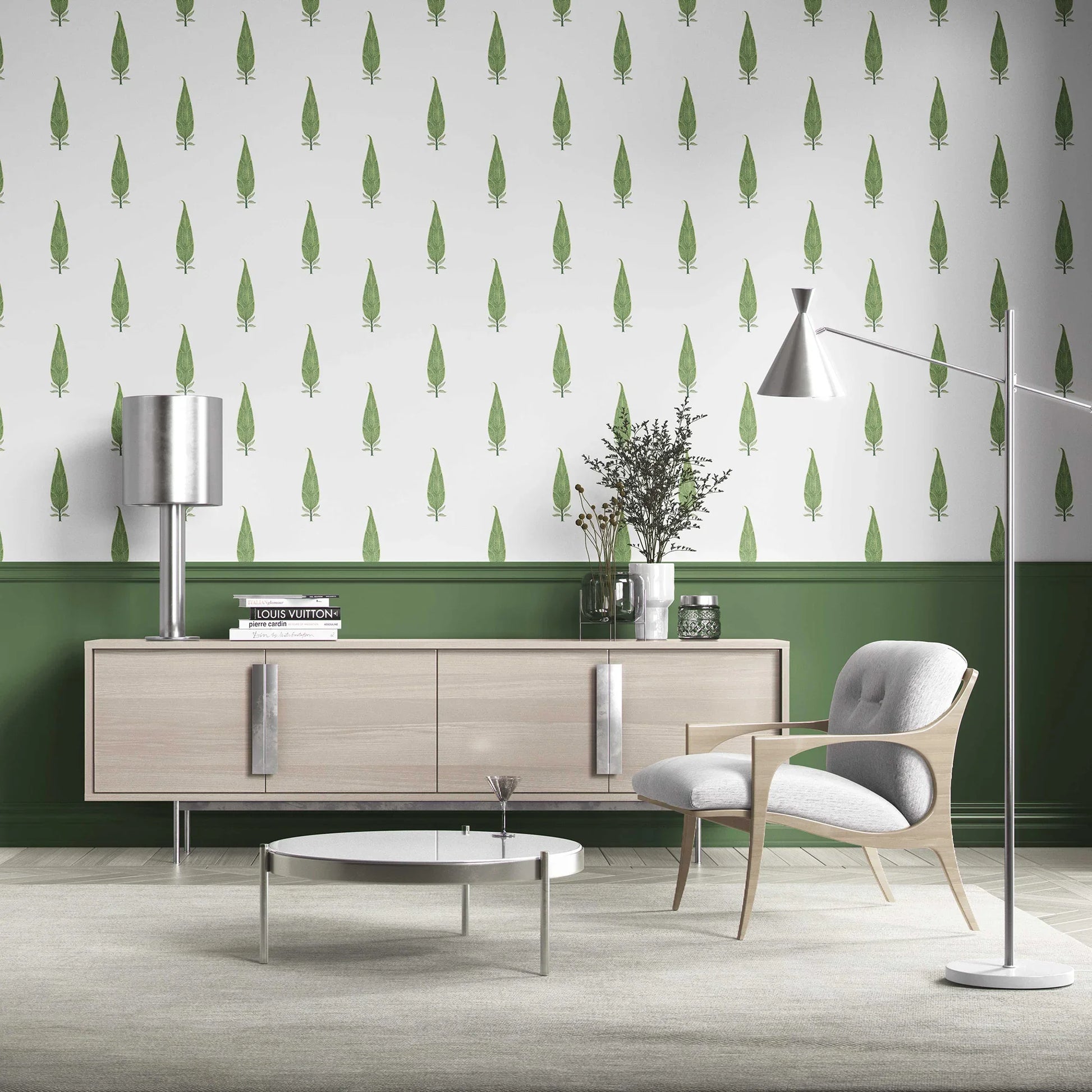 Inspired by the graceful form of the cypress tree, the Sarvangi Wallpaper brings a touch of timeless elegance to your interiors. A recurring motif drawn from Mughal gardens and palace frescoes, its upright silhouette symbolizes strength, longevity, and beauty.