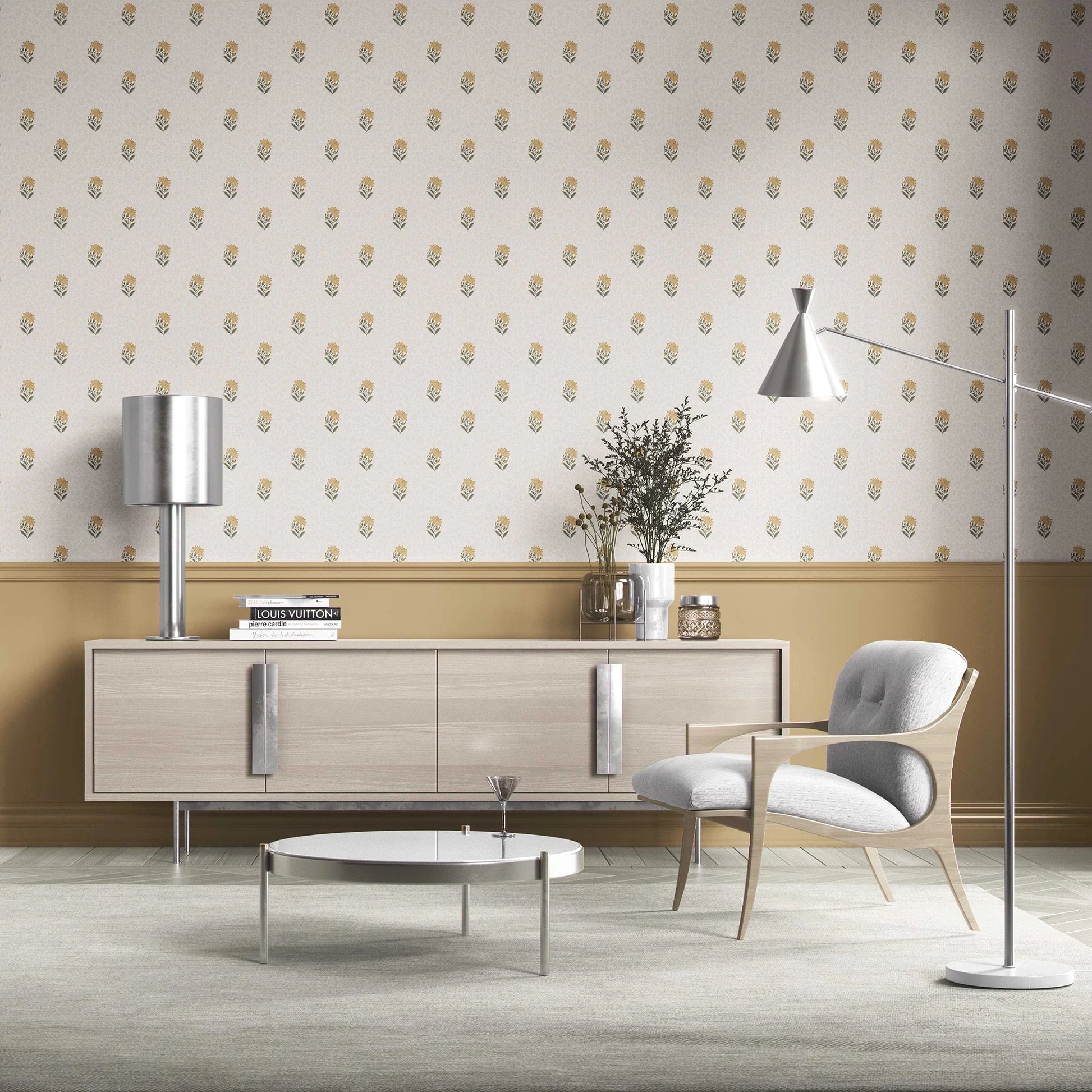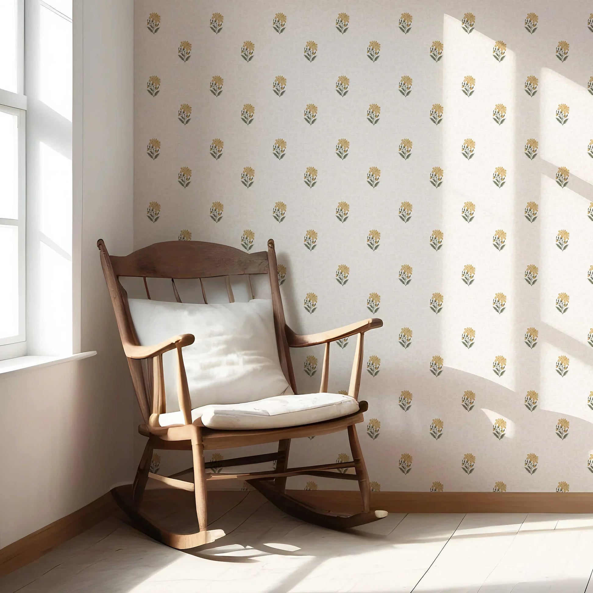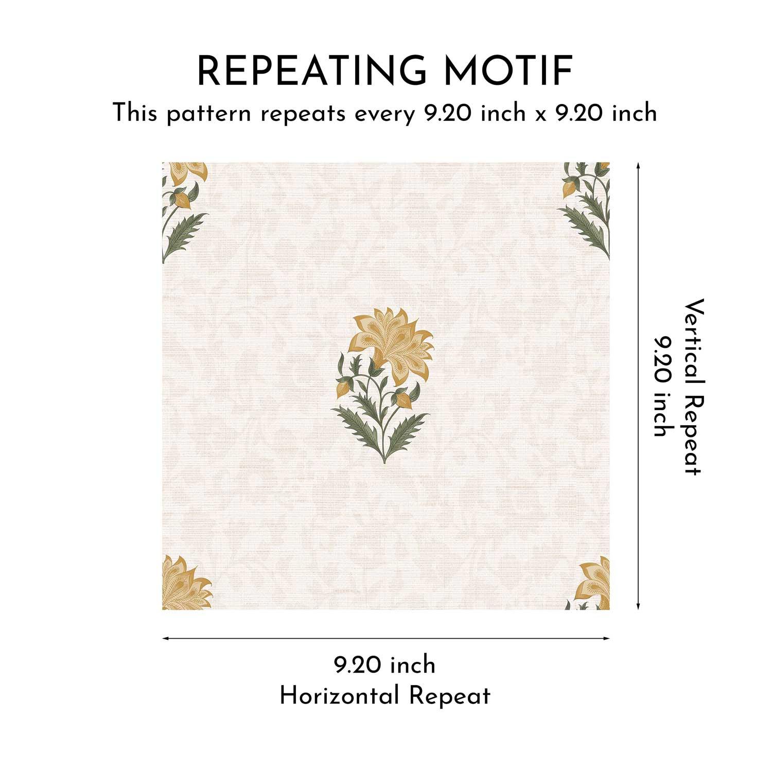 The Shahmina Wallpaper draws inspiration from Mughal miniature paintings and the timeless floral artistry of palace gardens. Featuring a delicately hand-drawn bloom repeated with symmetry and grace, this wallpaper strikes the perfect balance between elegance and simplicity.