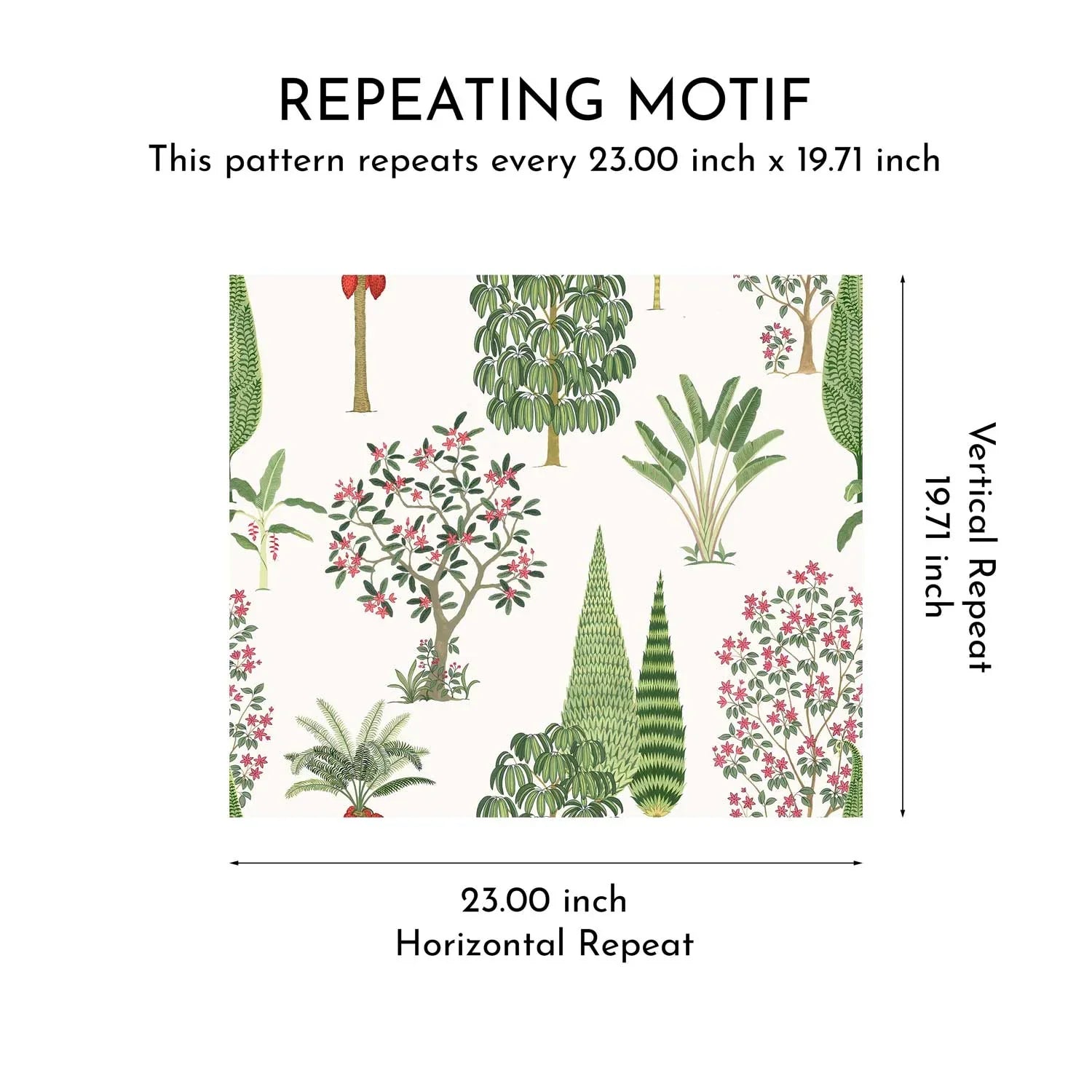 The interplay of varied botanical forms creates a layered visual story — structured yet organic, grand yet serene. Perfect for creating walls that feel immersive and expansive, Shalimar captures the timeless beauty of royal orchards and palace landscapes.