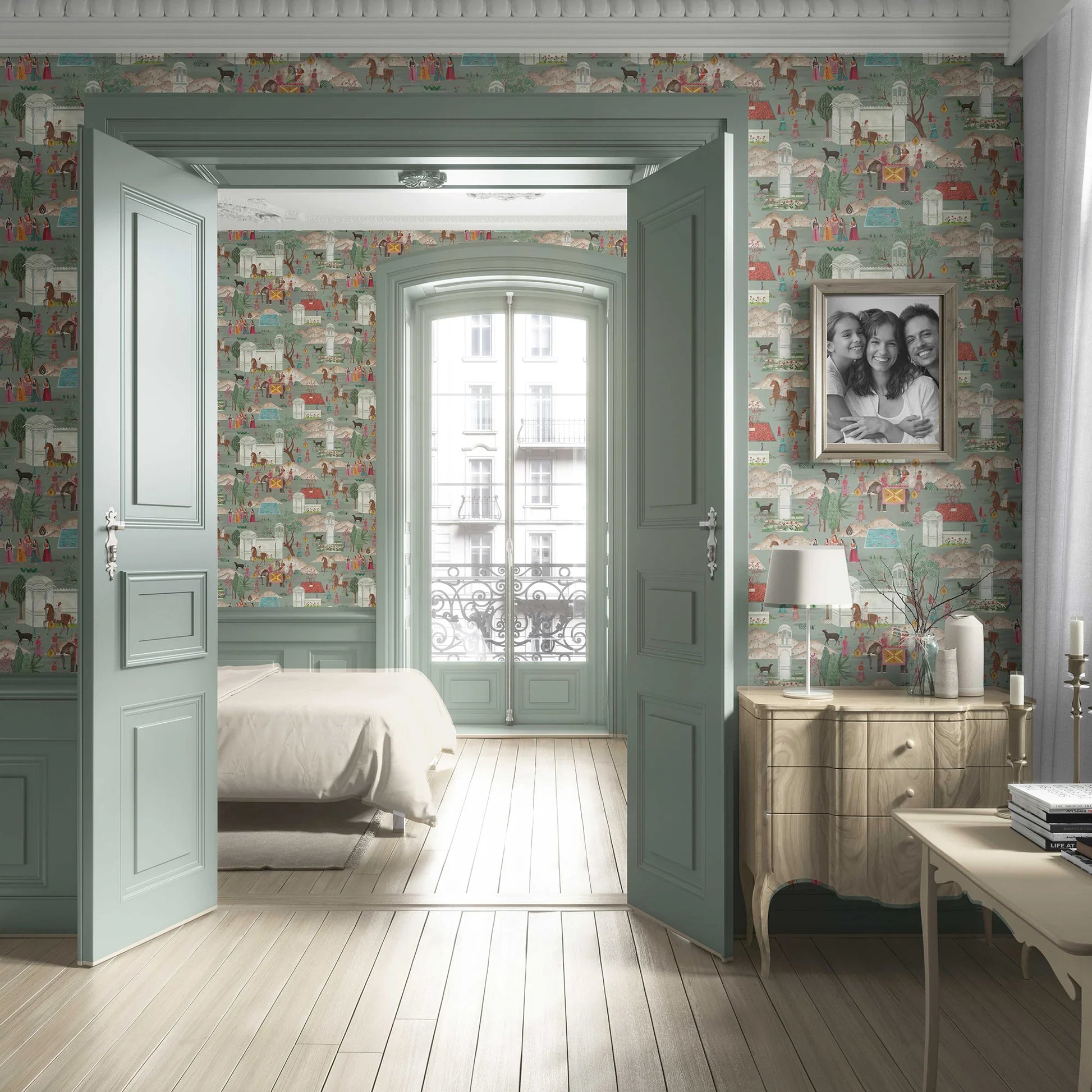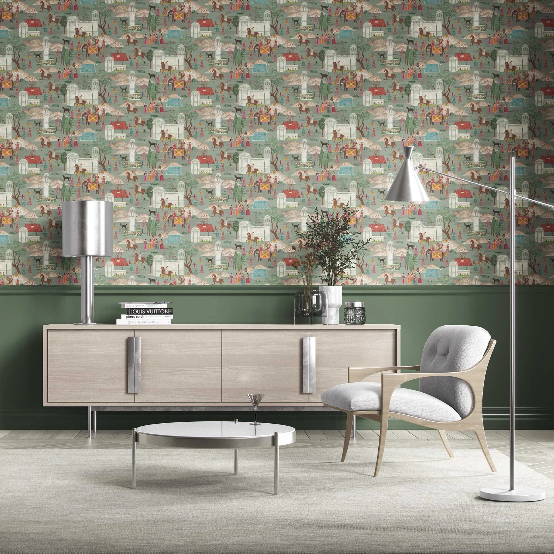 Bring home the vibrant stories of Rajasthan with the Shekhawati Tales Wallpaper, a striking design inspired by the frescoes and havelis of the Shekhawati region. This wallpaper captures the spirit of desert towns where history, folklore, and artistry meet.