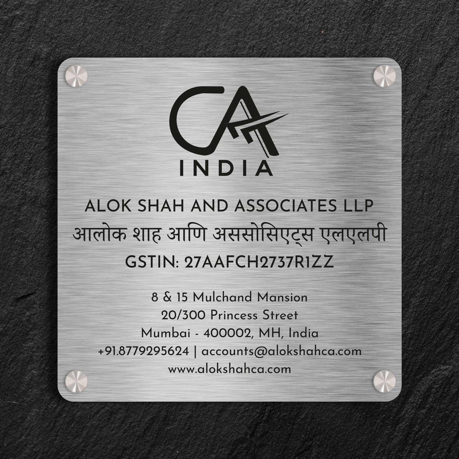 Squarica - Stainless Steel Name Plate for CA Firms