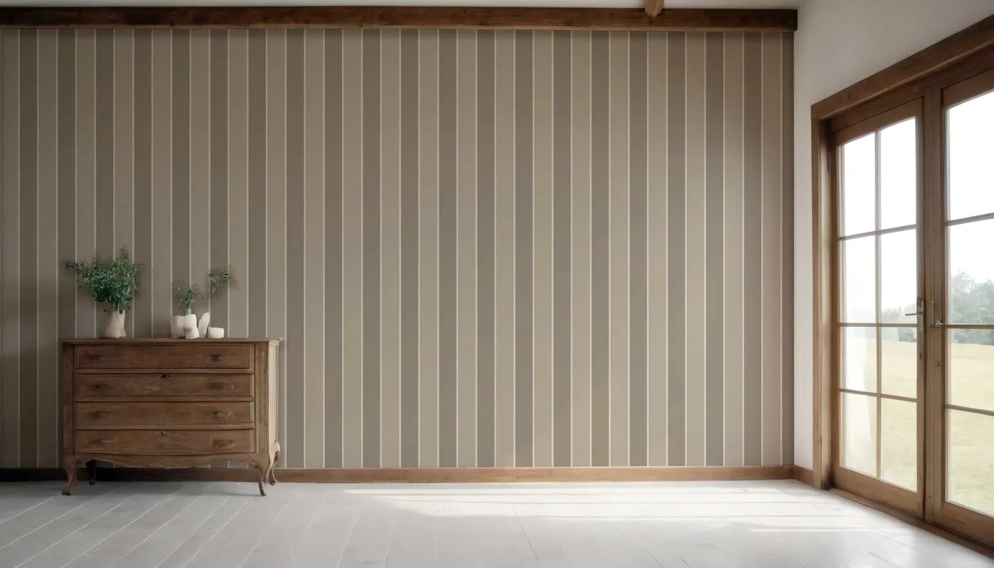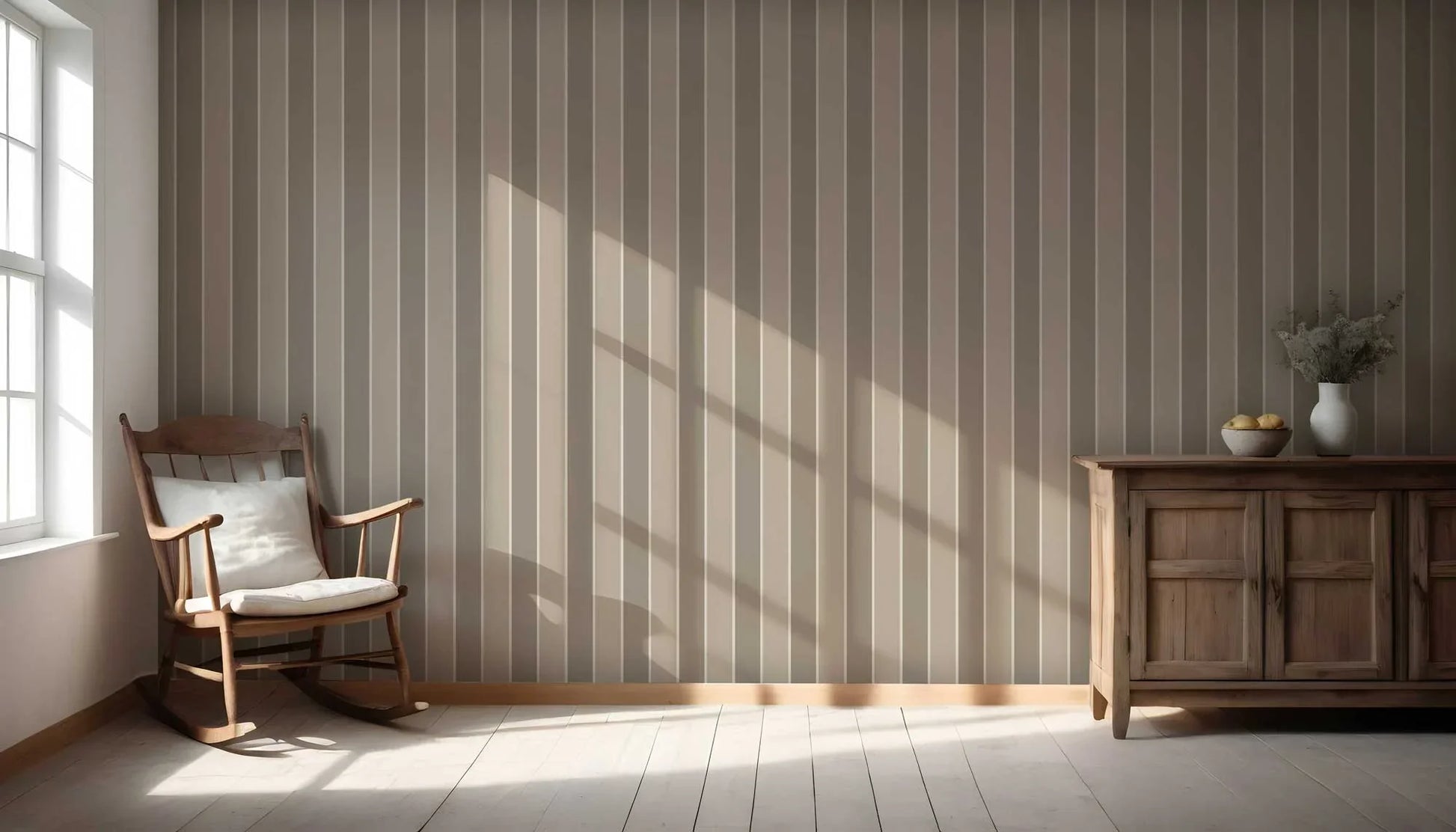 A celebration of subtle elegance, Still Lines pairs the quiet rhythm of vertical stripes with a palette of soft, earthy tones. Designed to bring balance and calm to your space, each wallpaper in this collection adds height, harmony, and understated sophistication to your walls. Ideal for modern, minimalist, or natural-themed interiors, these timeless stripes invite a sense of stillness — without ever feeling static.