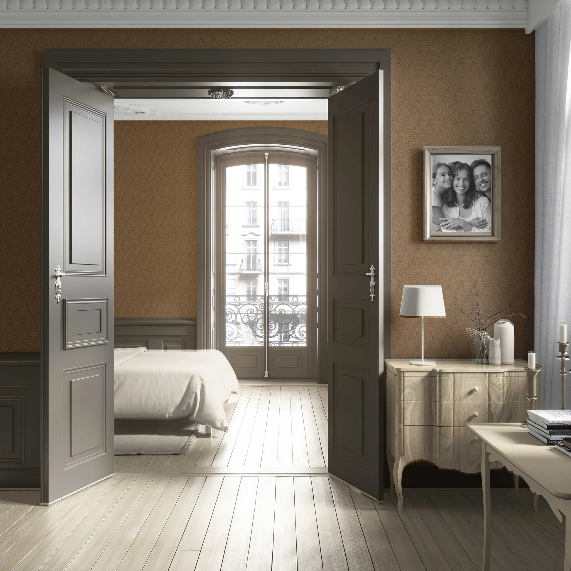 Perfect for creating a refined backdrop, Suroor adds a layer of sophistication to living rooms, bedrooms, hallways, or boutique spaces. Whether you choose soft neutrals for a calming ambiance or deeper hues for a statement wall, this wallpaper brings effortless grace and a hint of heritage charm to your interiors.