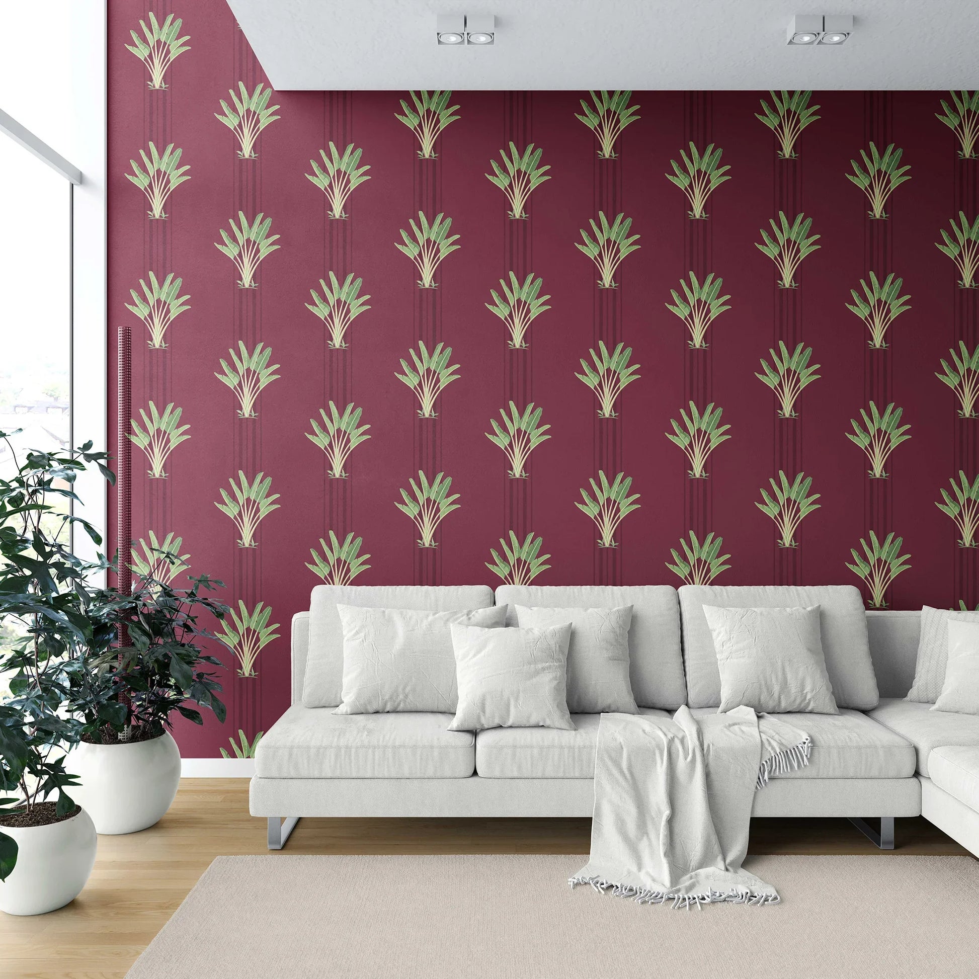 Bring the timeless elegance of Mughal-inspired gardens into your space with the Taalbagh Wallpaper. Featuring graceful palm motifs arranged in perfectly aligned columns, this design evokes the charm of royal courtyards and the symmetry of classical Indian architecture. The vertical lines add a sense of height and structure, while the lush green foliage brings a refreshing, natural touch to your interiors.