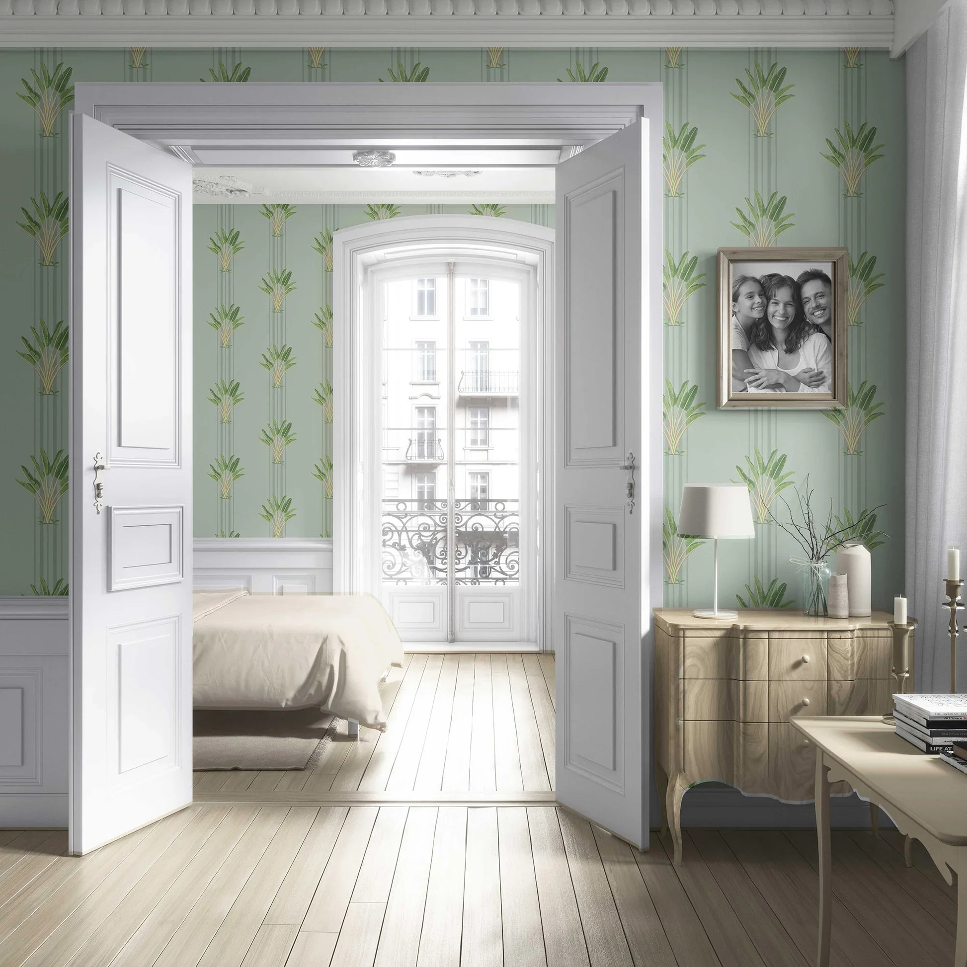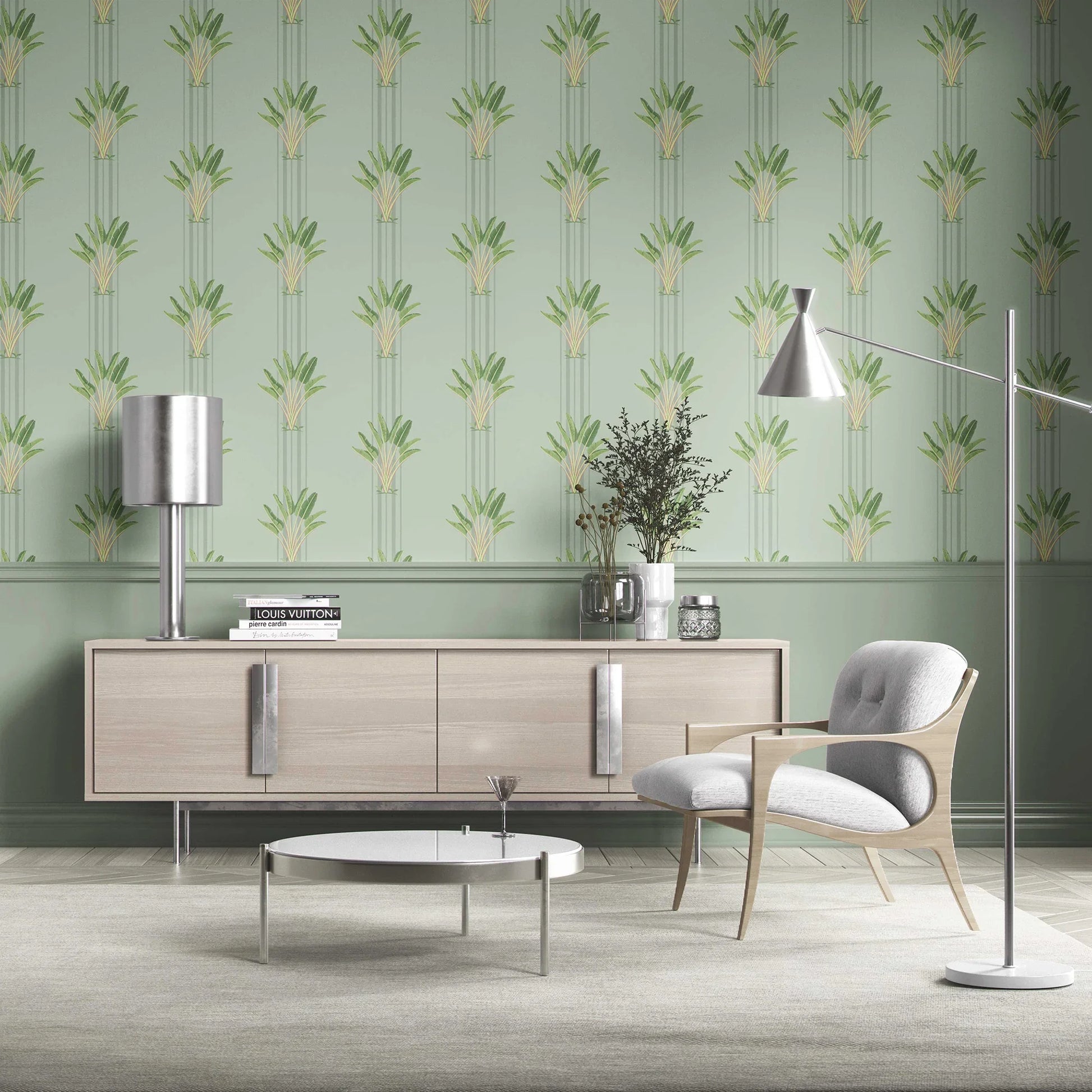 Bring the timeless elegance of Mughal-inspired gardens into your space with the Taalbagh Wallpaper. Featuring graceful palm motifs arranged in perfectly aligned columns, this design evokes the charm of royal courtyards and the symmetry of classical Indian architecture. The vertical lines add a sense of height and structure, while the lush green foliage brings a refreshing, natural touch to your interiors.