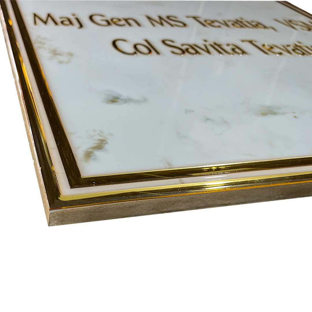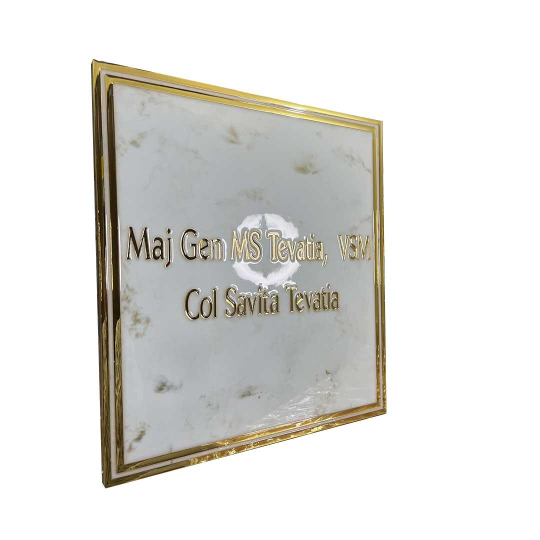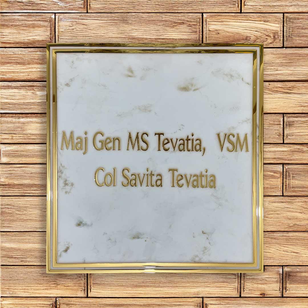 - We are unable to offer you a live preview of your customized Tevatia - Marble White and Gold Resin Nameplate. Our team will send you a manually generated preview via e-mail / WhatsApp message once you place the order. You can also request them to make additional changes. We will proceed with production only once we get your approval.