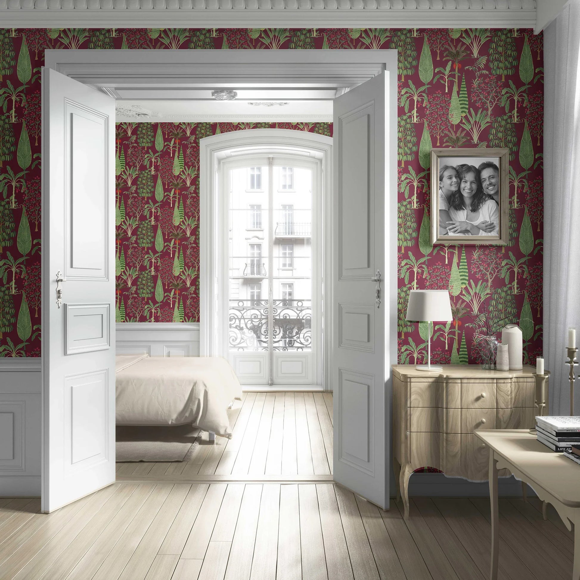 Vrindavan Wallpaper - Maroon Orchard