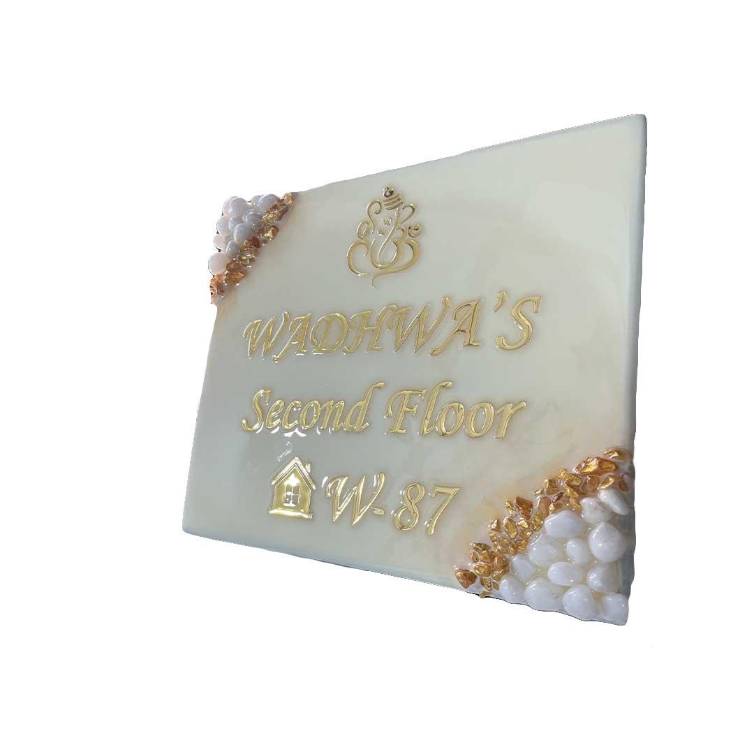 Crafted with a rich shade of off-white resin and a glossy finish, this rectangular nameplate adds an elegant touch to your home's entrance. Handcrafted with meticulous detail, it's a testament to premium quality and enduring style. Here's what makes it special: